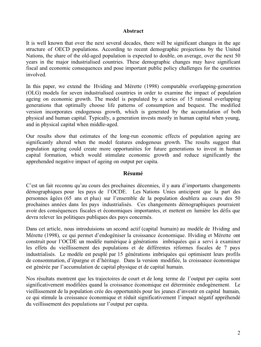 在本文中,我们使用Hviding和Meacute;rette建立的七个国家的OLG模型(1998)研究老龄化对经济增长和产出的影响。我们扩展了原有的模型,增加内生增长的特点。这七个国家是加拿大,法国,意大利,日本,瑞典,英国和美国。扩展的版本与在相同的参数原始模型一起校准,因此,产生相同的初始稳定状态。所以我们的结果是直接和Hviding和Meacute;rette(1998)的研究结果比较的。