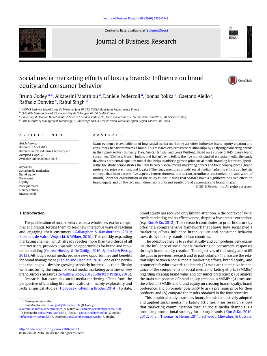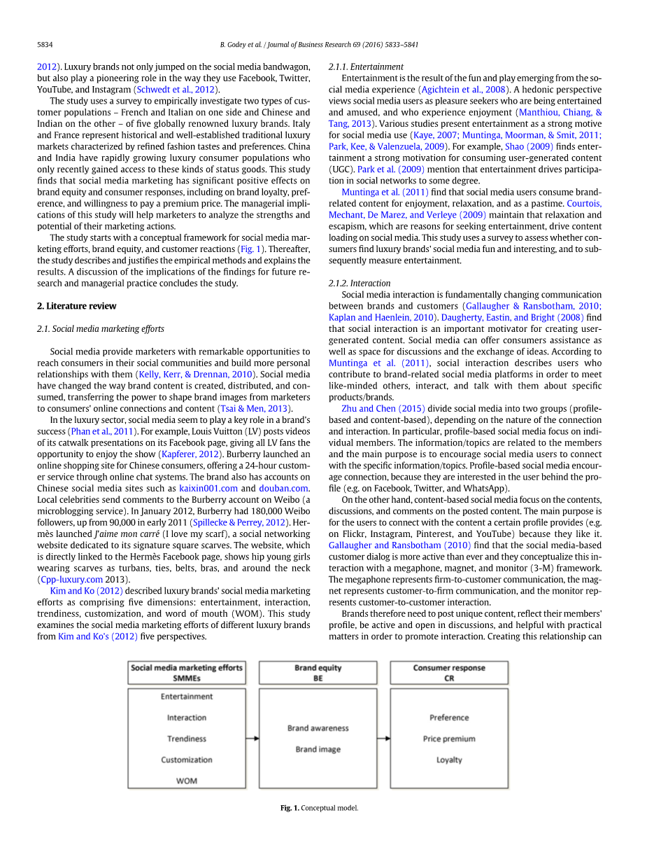 奢侈品牌的社交媒体营销努力:对品牌资产和消费者行为的影响外文翻译资料