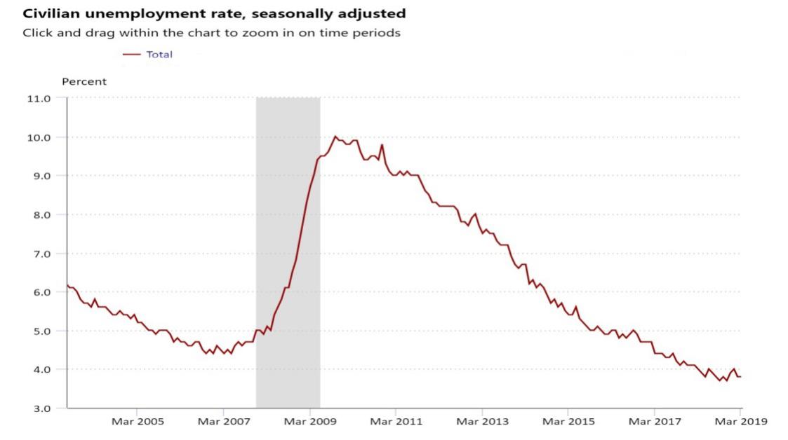图2.1 美国2005-2019失业率