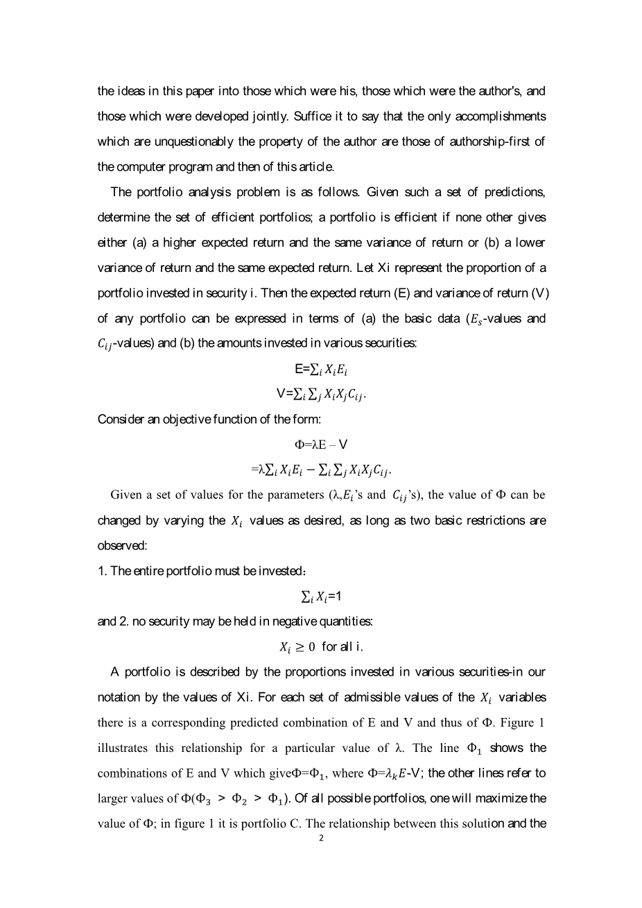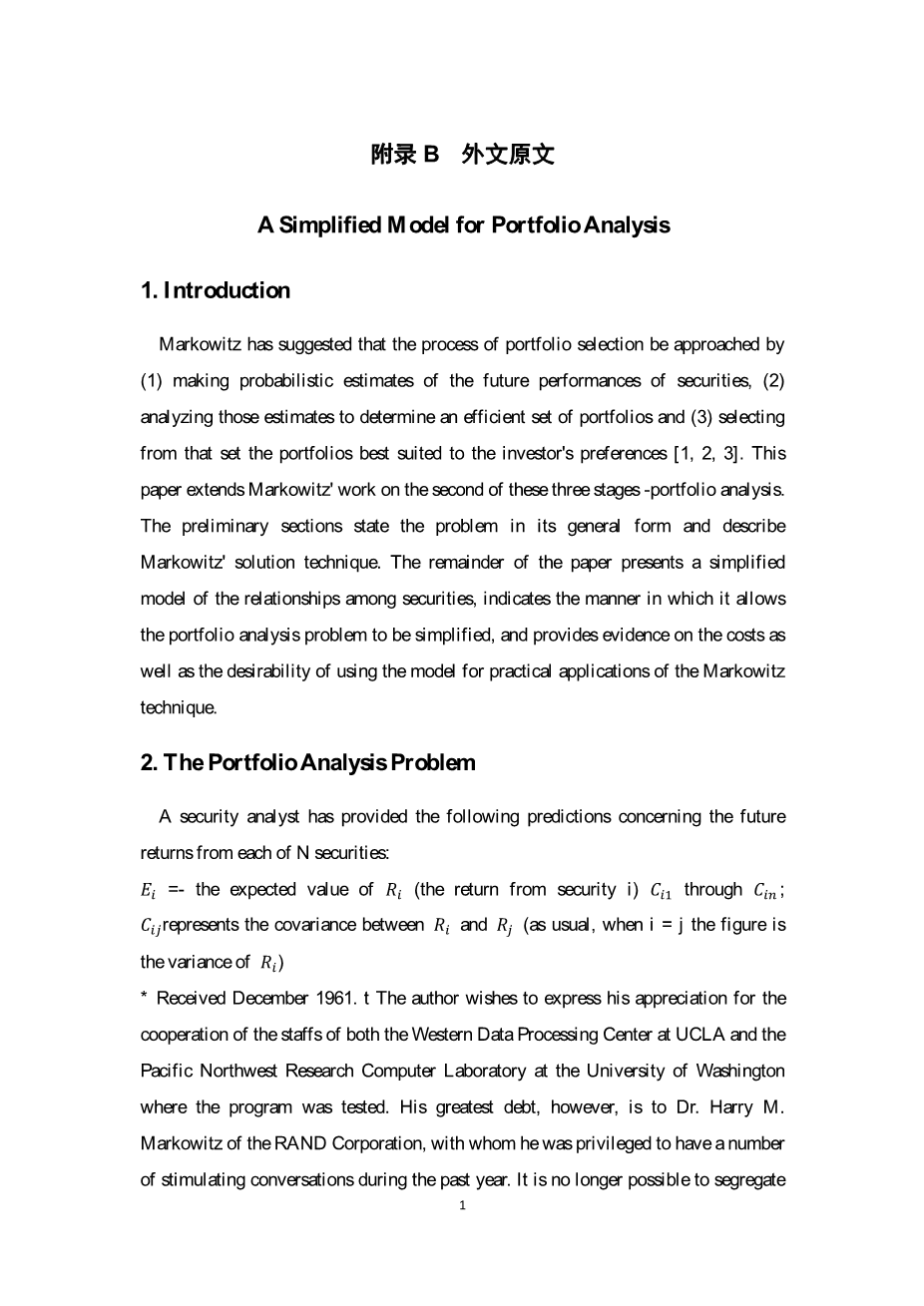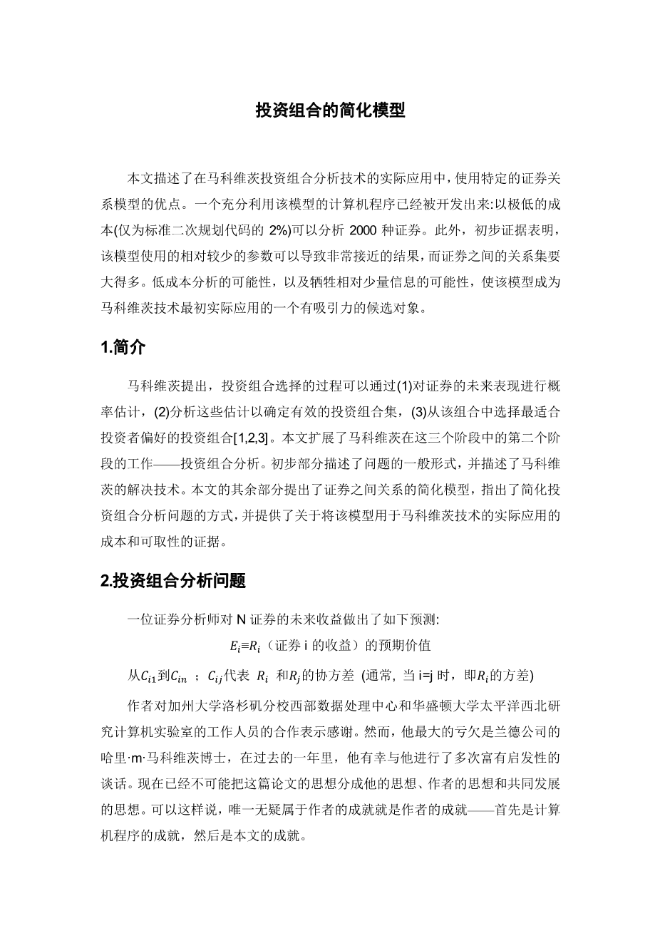 投资组合的简化模型外文翻译资料