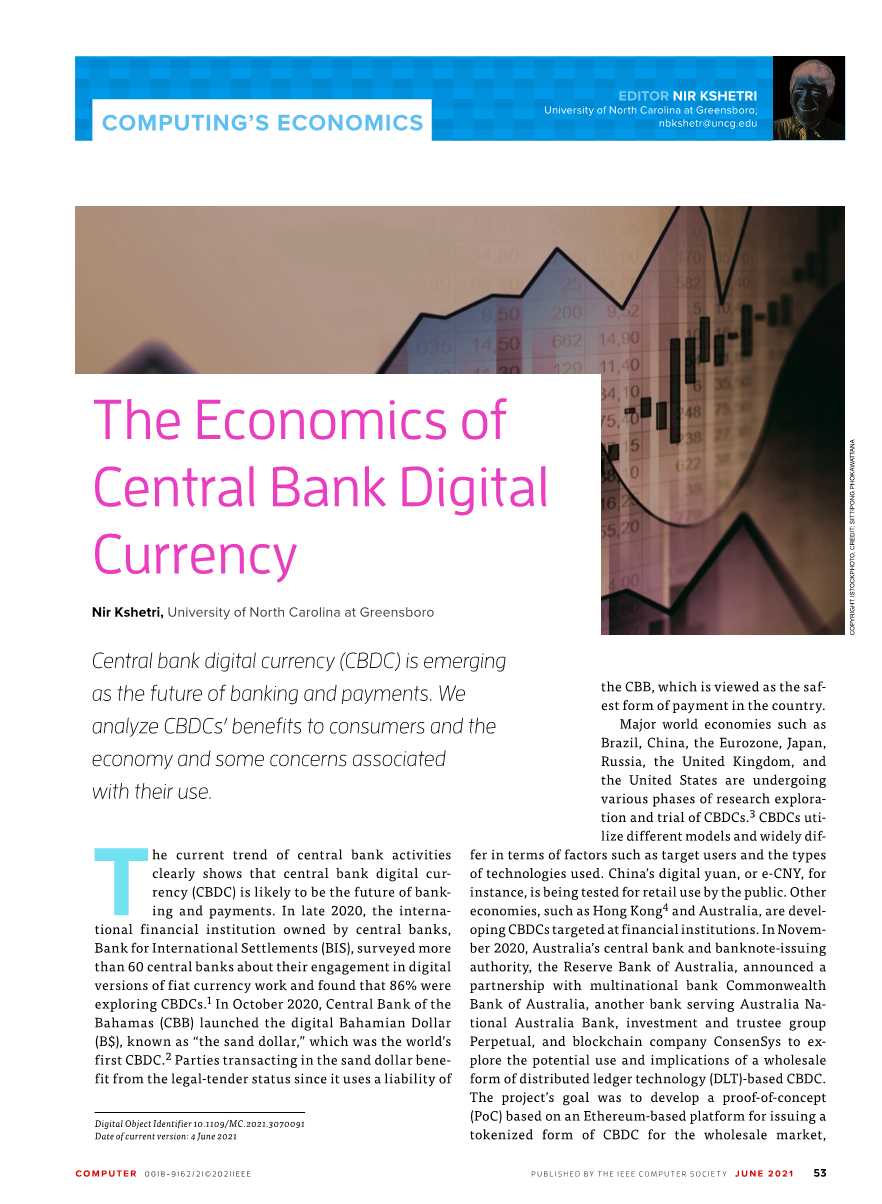 Kshetri Nir. The Economics of Central Bank Digital Currency[J]. COMPUTER,2021,54.