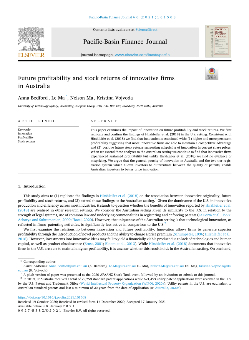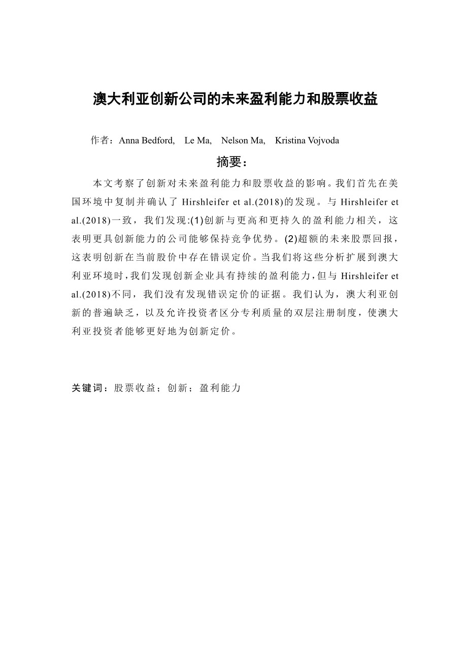 澳大利亚创新公司的未来盈利能力和股票收益外文翻译资料
