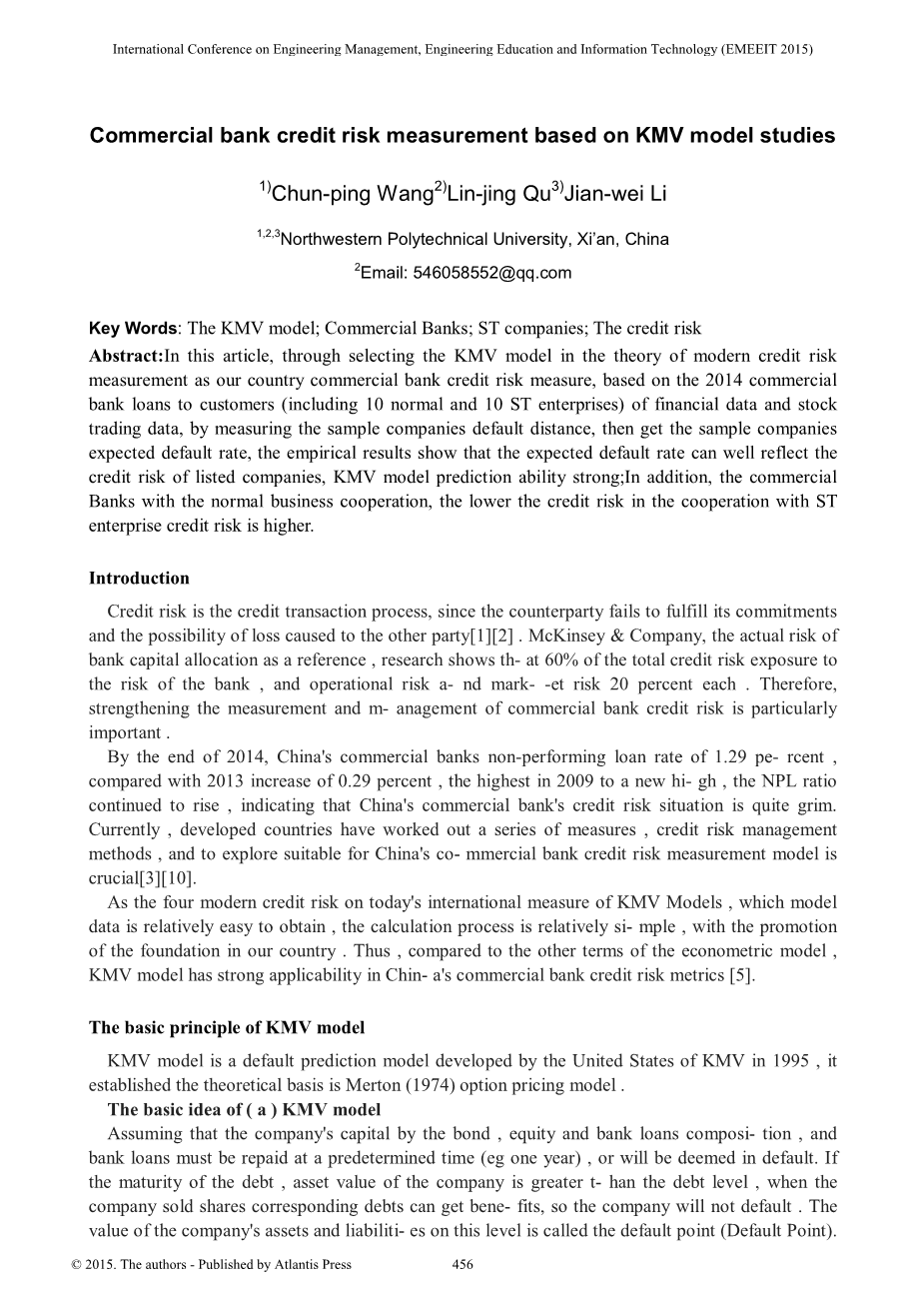 基于KMV模型的商业银行信用风险度量研究外文翻译资料