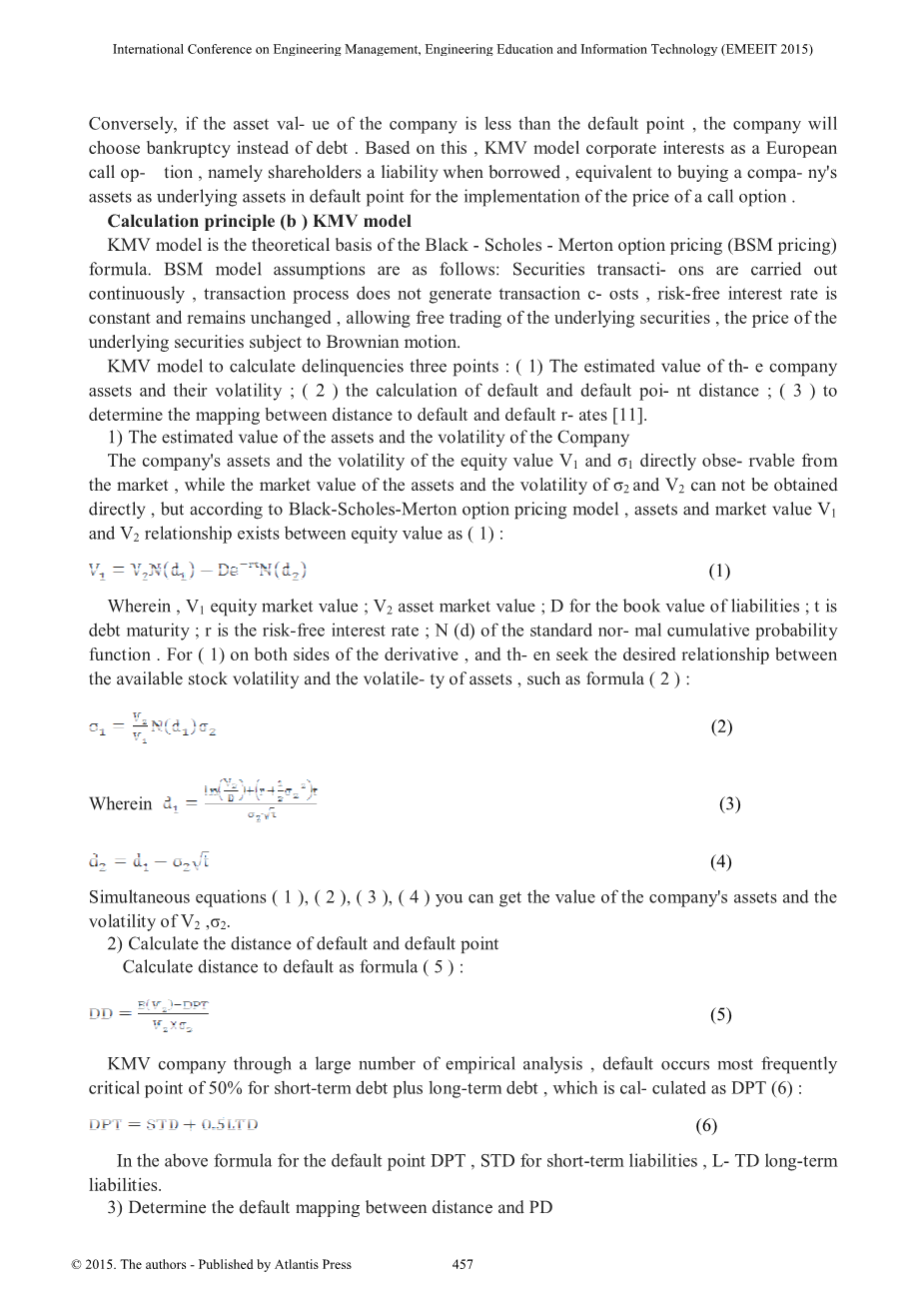 有一些不同的公式是基于DD理论上推导出EDF,法国电力公司(EDF)理论和实际的违约率,但由于中国尚未建立一个完整的企业违约的数据库,在此基础上,中国商业银行信用风险度量时,只计算理论EDF。