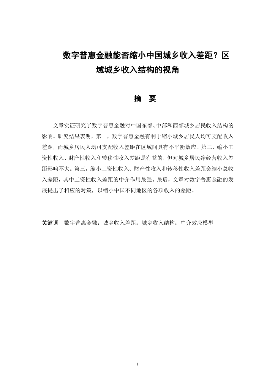 数字普惠金融能否缩小中国城乡收入差距?区域城乡收入结构的视角外文翻译资料