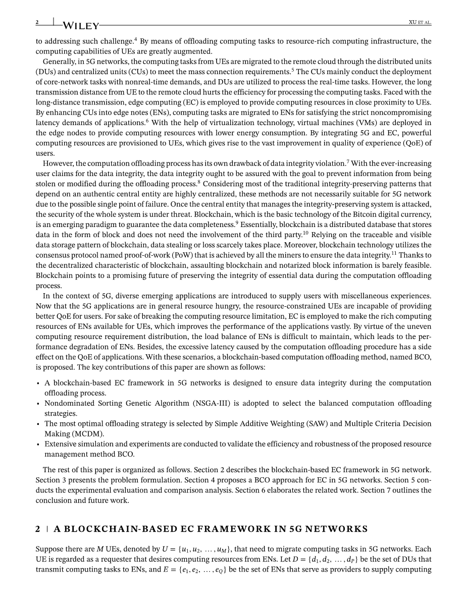 bull;在5G网络中设计了一个基于区块链的边缘计算框架,以确保计算卸载过程中的数据完整性。