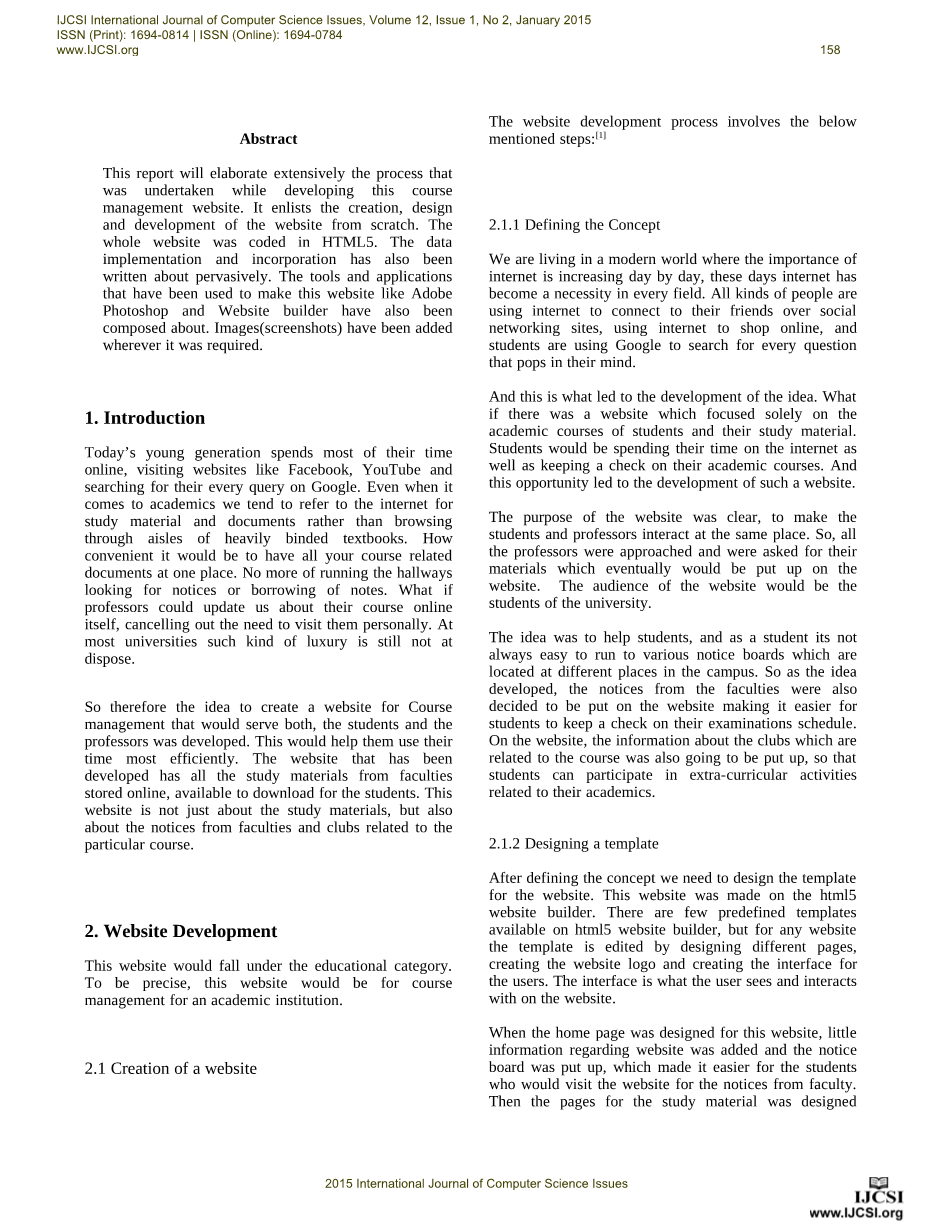 因此开发一个课程管理网站的想法将会服务两类人,即学生和教授。这将有助于他们最有效地利用自己的时间。已开发的网站拥有所有院系在网上存储的学习资料,可供学生下载使用。本网站并不仅仅只有学习材料,也有各院系和俱乐部发出的有关特定课程的通知。