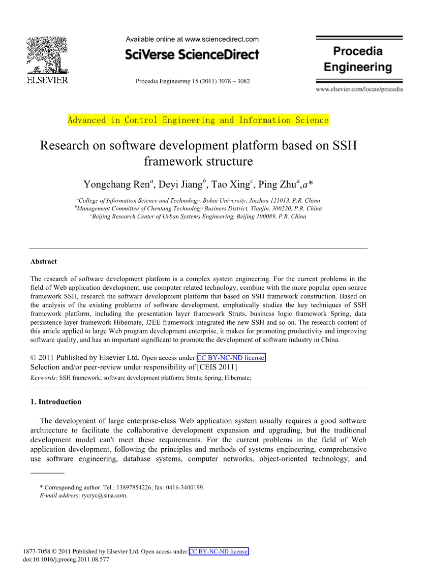 关键词:SSH框架;软件开发平台 ;Struts; Spring; Hibernate