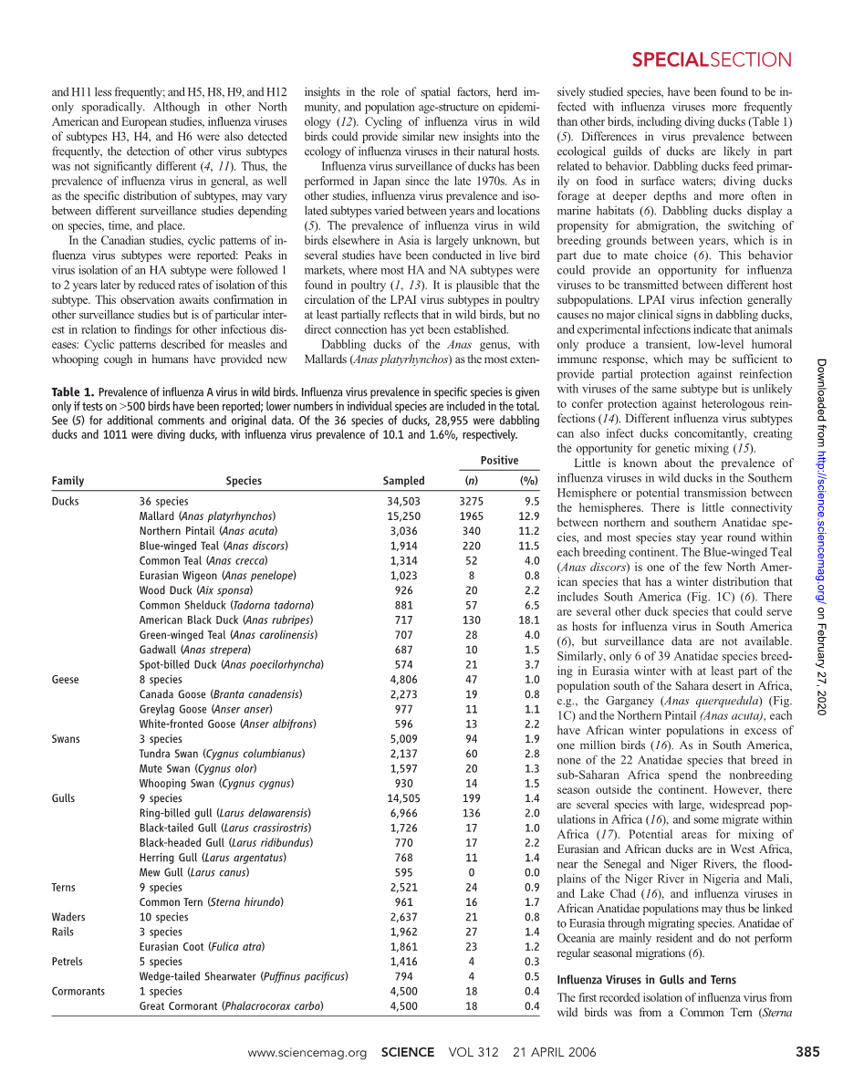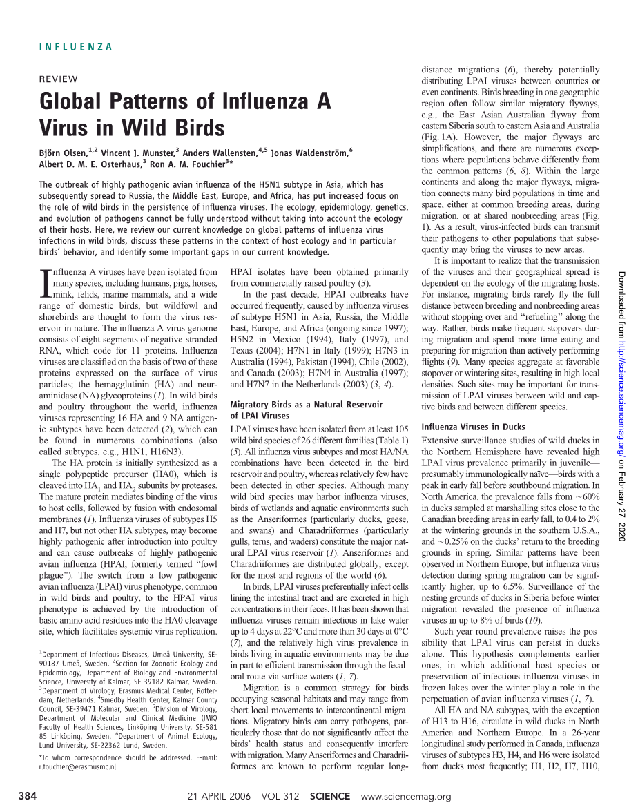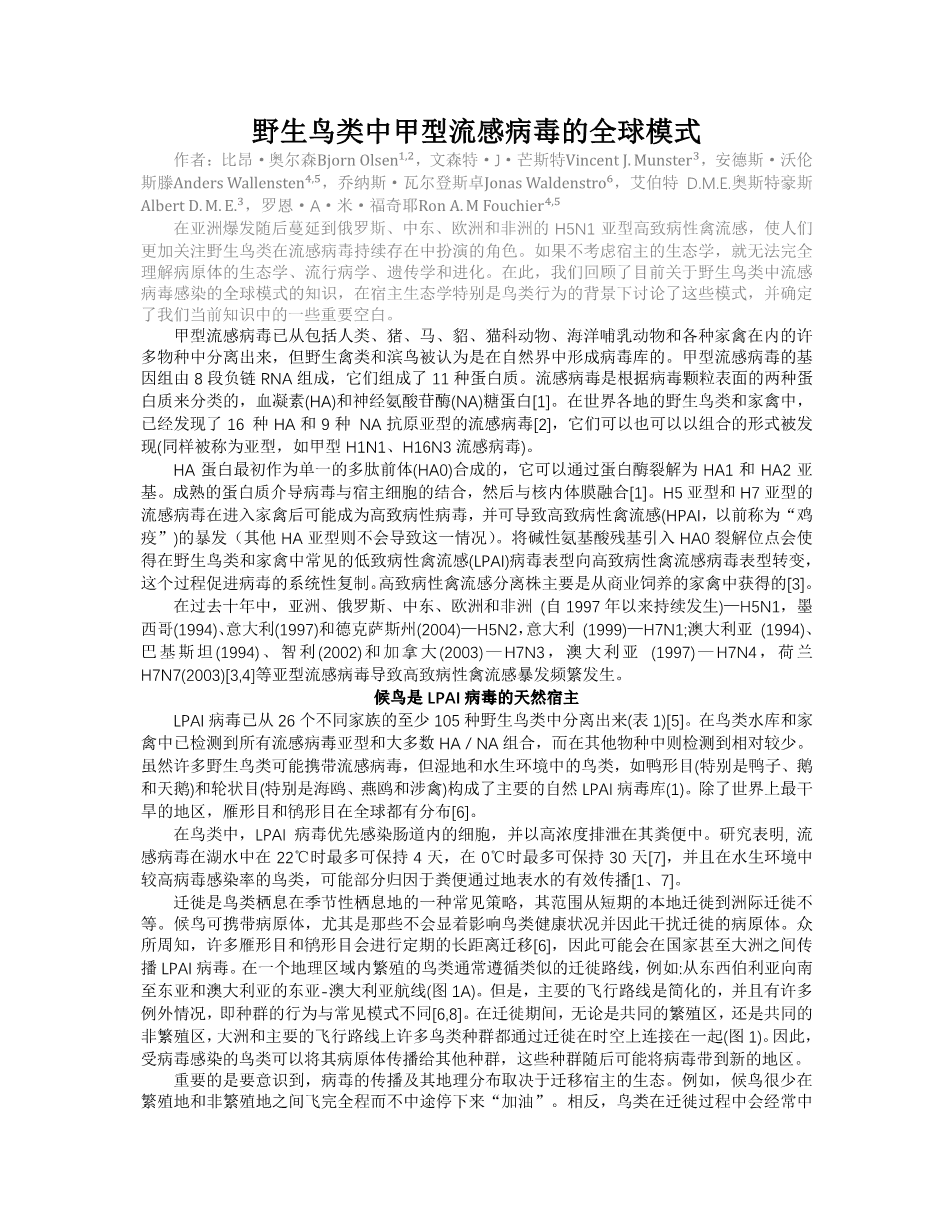 野生鸟类中甲型流感病毒的全球模式外文翻译资料