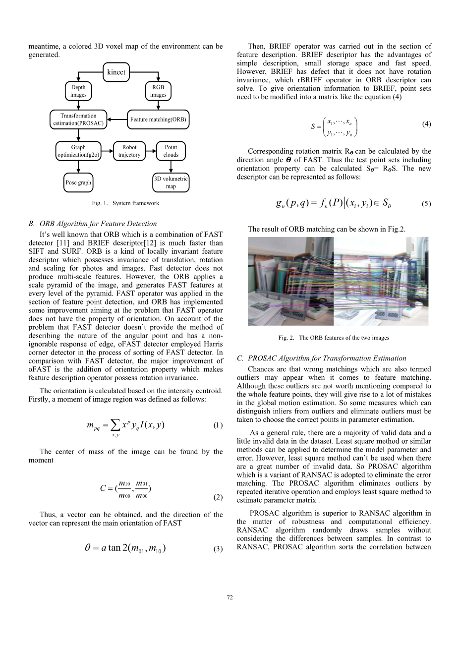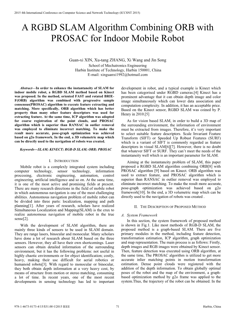 基于室内移动机器人的- -种融合ORB和PROSAC的 RGBD SLAM算法外文翻译资料