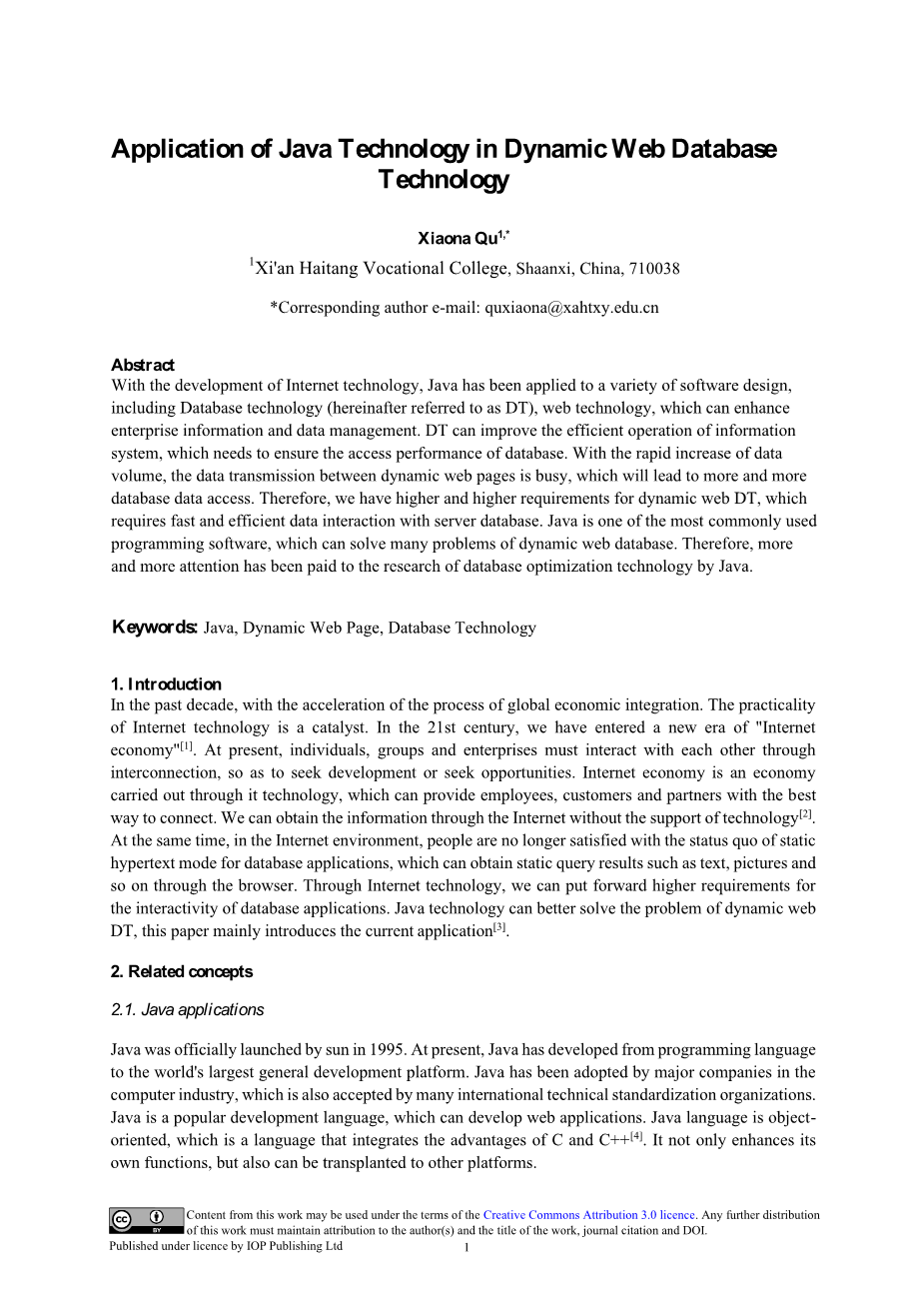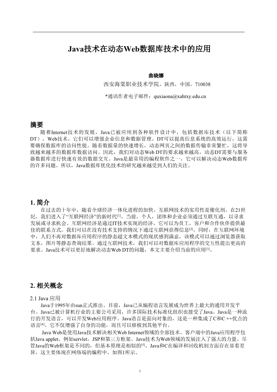 Java技术在动态Web数据库技术中的应用外文翻译资料