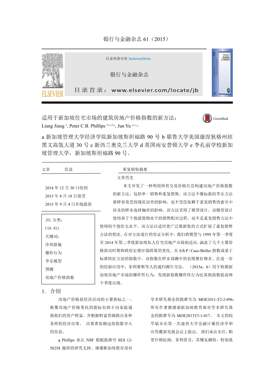 适用于新加坡住宅市场的建筑房地产价格指数的新方法外文翻译资料