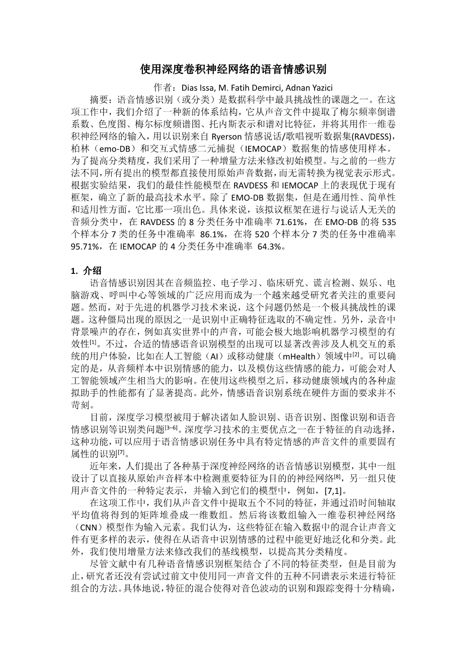 使用深度卷积神经网络的语音情感识别外文翻译资料