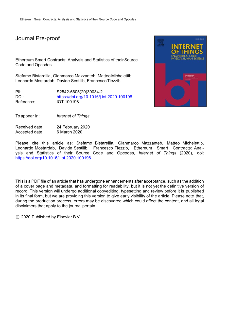 为了获得智能合约的有形利益,它们的使用一直在稳步增长。他们依靠区块链技术来缓解金钱、财产、信息或任何人们认为合适的东西转移。智能合约在多个区域已经成功地应用于物联网应用程序,其中的事物属于不同的实体,没有相互信任的[1]。与传统合约不同,智能合约是可计算的,这应该会提高其安全性,并降低执行协议条款的成本。以太坊[2]是最知名的智能合约定义平台之一。这些合约通常通过使用solidity[3]编程语言来执行,这类似于JavaScript和C 。其他语言,如Vyper和bamboo,也可以使用。刚性智能合约不能由以太坊虚拟机(EVM)直接执行,因此它们会被编译成低级的机器指令,即字节码。这些指令定义了一个图灵全局域网,通常通过使用一种可读的格式来表示,这被称为光电码。智能合约是在以太坊提供的基于区块链的分布式计算平台上执行的。人们已经从智能合约数据的各个角度进行了大量的研究分析。[4]中的作者分析了智能合约,以检测僵尸合约。经验在[5]中提出的20项研究通过考虑合约的应用领域来分析合约的使用情况。最后,其他的研究,如[6]和[7]中描述的研究,从经济、技术和法律的角度来检查合约。这项工作提出了一个关于以太坊操作码和使用的新的研究在以太度区块链平台上部署了大量真实的智能合约。目的是了解聪明的合约程序员如何使用以太坊支持的语言指令。我们对智能合约操作码进行了分析,以找出在实践中起关键作用的操作码,并排除那些不实际的相关操作码在本文中,我们引入了对可靠性智能合约源代码的新研究,进一步加强了我们的分析。这允许我们理解程序员是如何在实践中使用高级语言结构的。为了进行这项研究,我们收集了成千上万份经过验证的以太坊智能合约语言。当智能合约可以通过编译,提供了一个特定的源代码获得证明时,它们就会得到验证我们分析了用于智能合约定义的控制流结构和核心指令。我们分析了操作码的使用,以提取有用的信息。例如,我们发现了在任何操作码中都没有出现的存在在区块链上部署了40个智能合约。相反,我们对智能合约源代码的分析,为可靠性语言的使用提供了重要的见解,因此,阐明了迄今为止所编写的智能合约的本质。例如,我们发现大多数智能合约并不使用控制循环,而是有一个相当简单的线性结构,而那个智能合约很少叫其他智能合约。因此,我们的研究支持识别一组核心特征,用于定义新的形式主义和领域特定的语言,以支持基于智能合约的应用程序的开发。形式主义可以促进正式的验证技术的发展。本文的其余部分组织如下。第2节描述了背面-以太坊基础;第三节详细介绍了用于收集智能合约数据的方法,并描述了我们的分析结果;第4节回顾了相关工作;第5节总结了论文并概述了未来的工作。