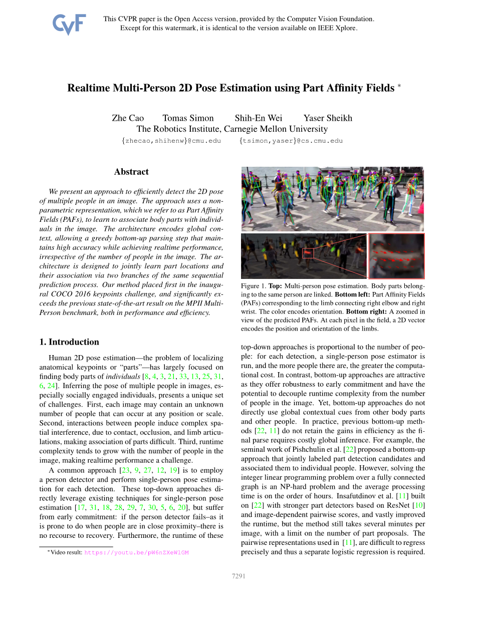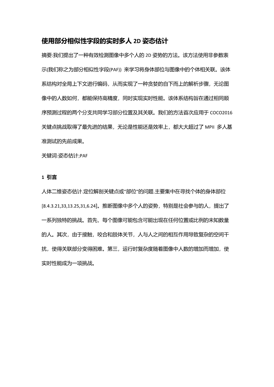 使用部分相似性字段的实时多人2D姿态估计外文翻译资料