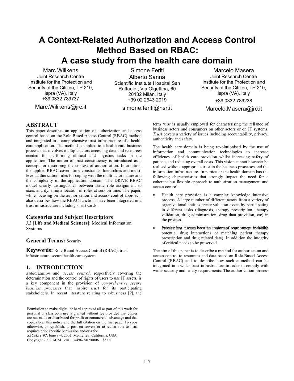 SACMATrsquo;02, SACMAT参会,六月3-4日,2002,加利福尼亚,蒙特雷,美国版权2002 ACM 1-58113-496-7 / 02 / 0006hellip;5美元