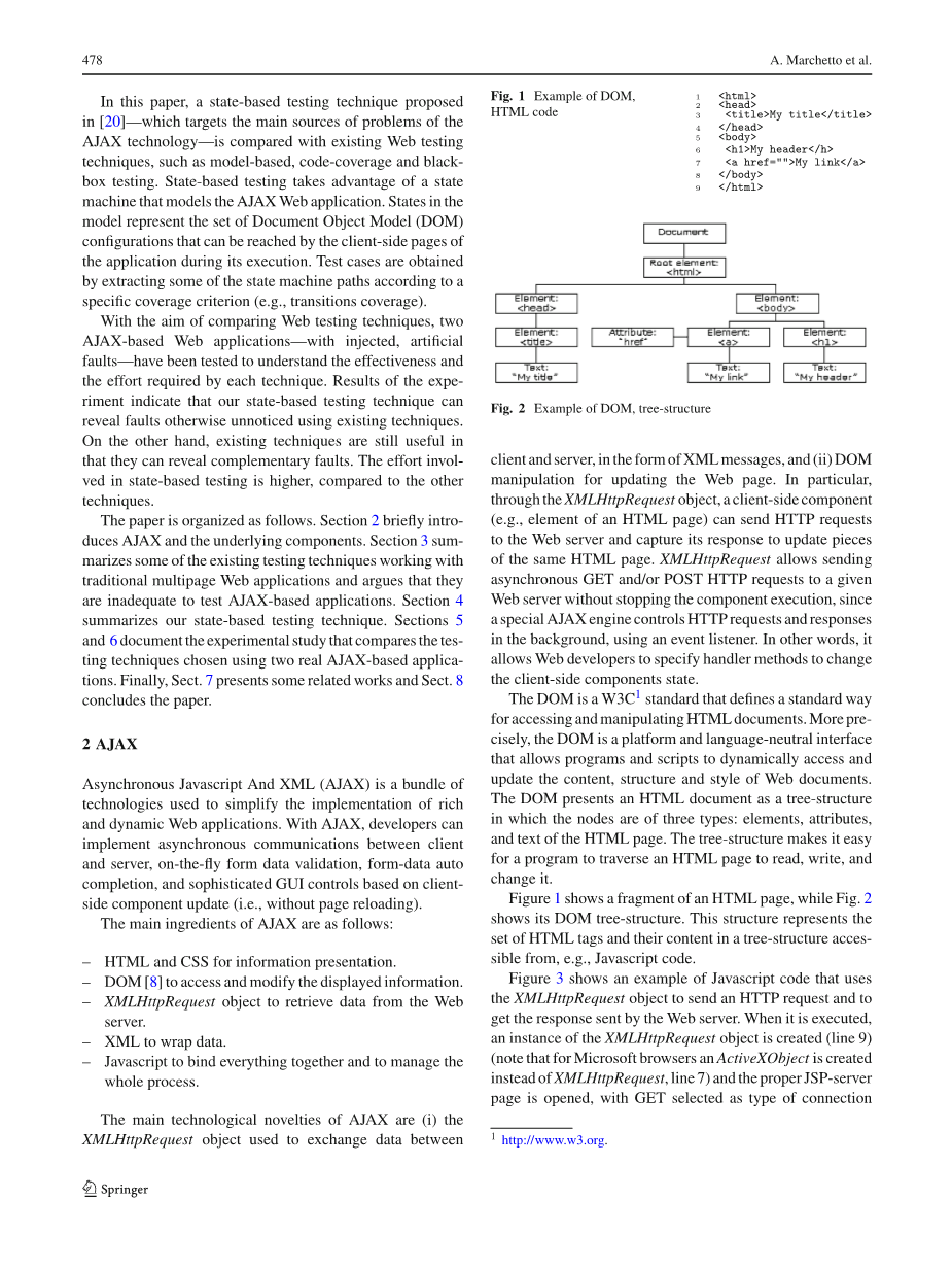 图1显示了一个片段一个HTML页面,而图2显示了其DOM树结构。这个结构代表了HTML标记的集合和它们的内容在一个树结构acces-sible,如。Javascript代码。