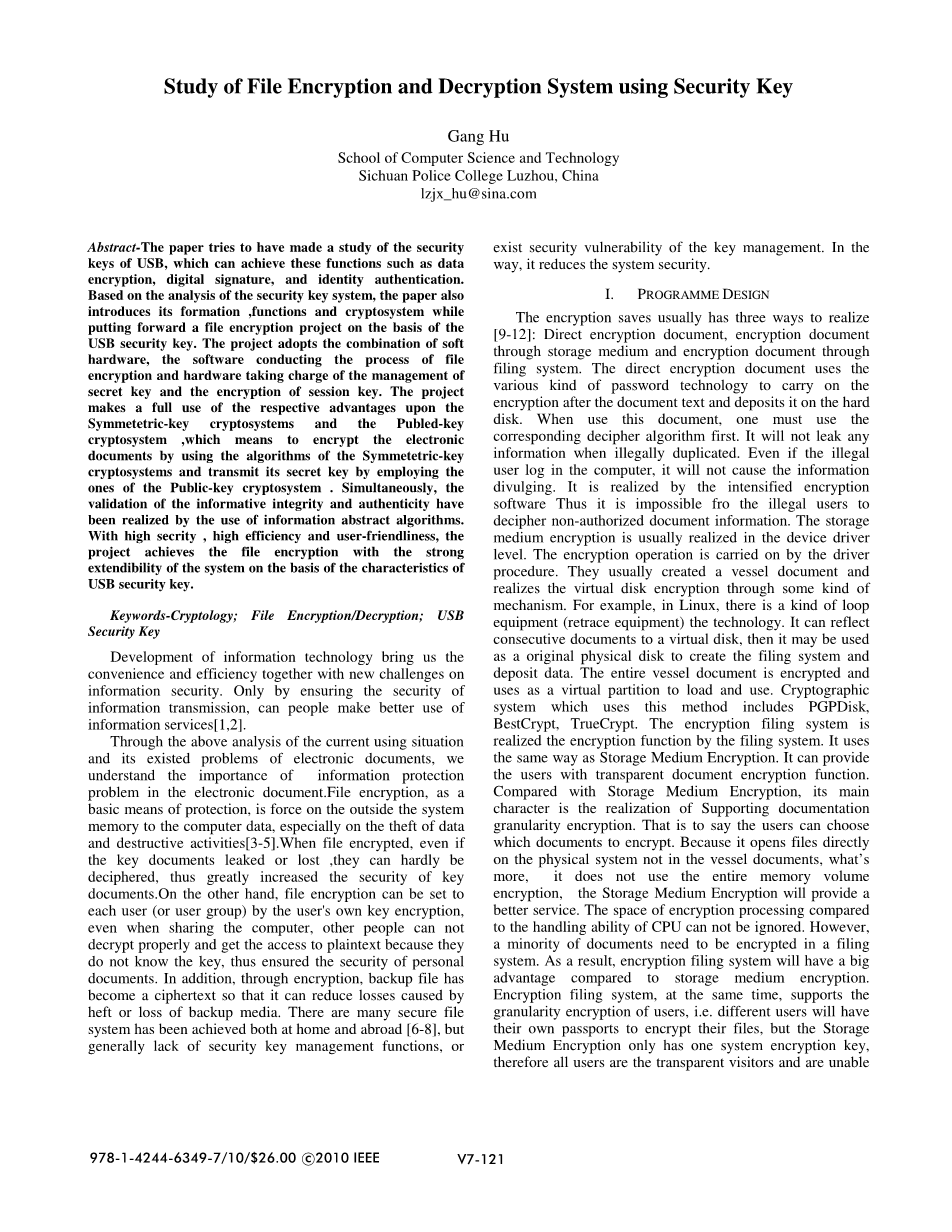 关键词:密码学; 文件加密/解密; USB安全密钥