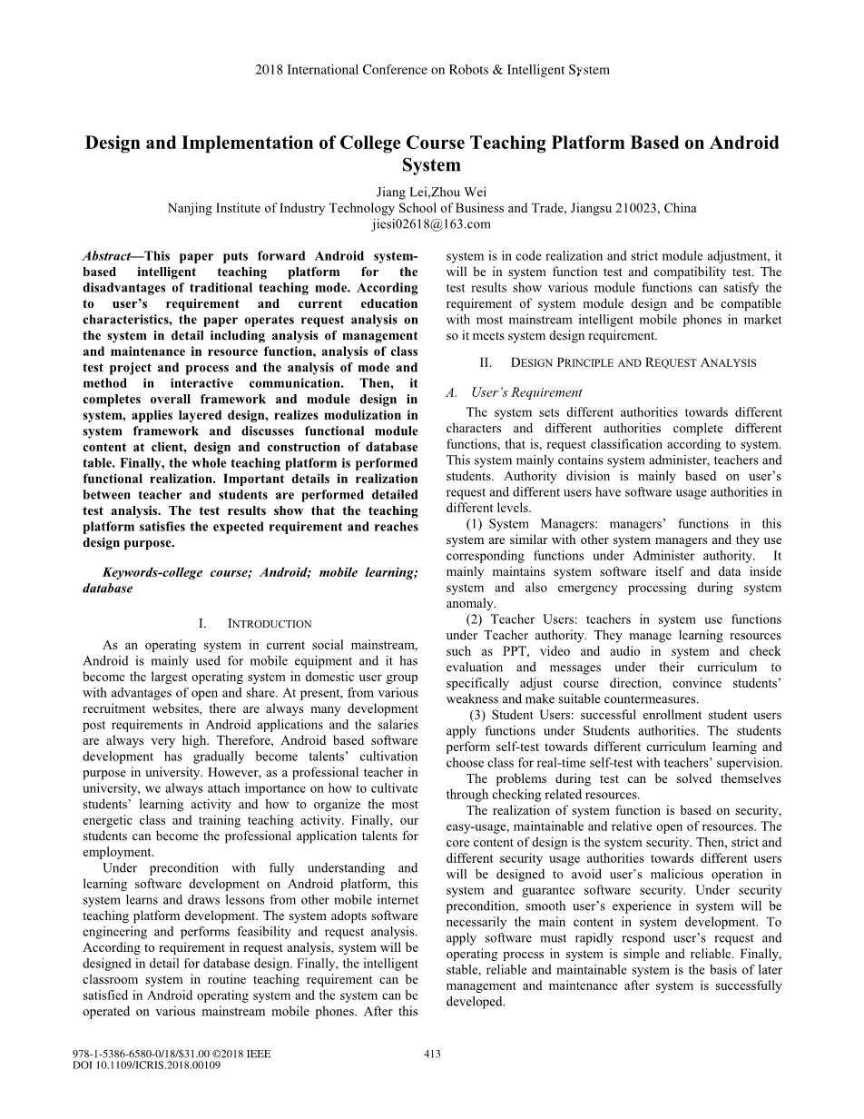题 目 基于Android系统的高校课程教学平台的设计与实现外文翻译资料