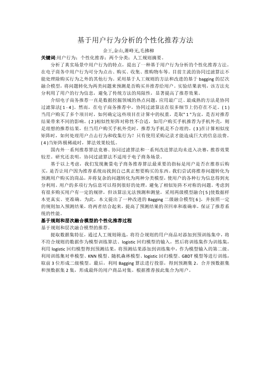 基于用户行为分析的个性化推荐方法外文翻译资料
