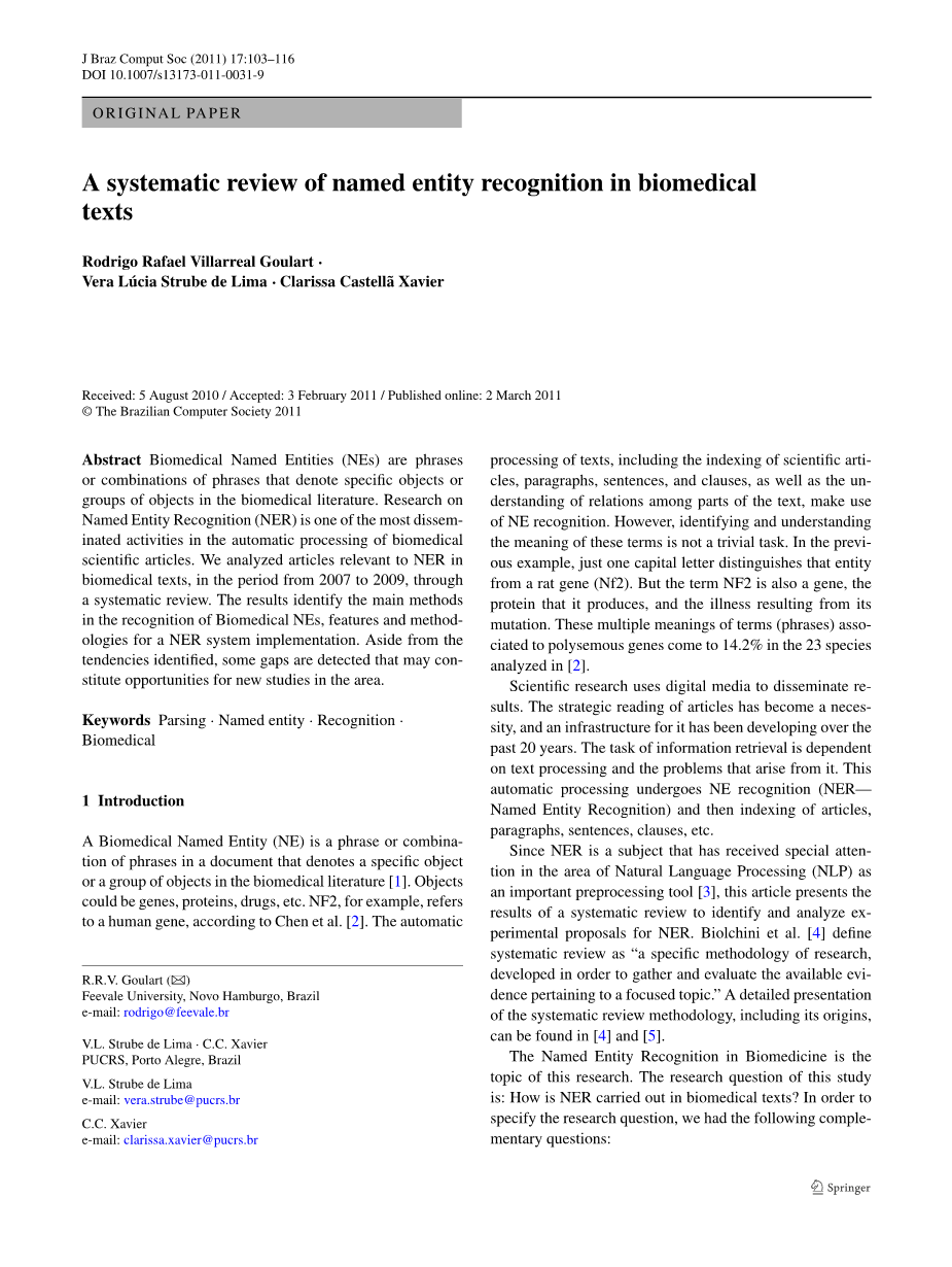 生物医学文献中命名实体识别系统综述外文翻译资料