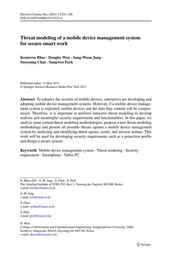 关于安全智能工作的移动设备管理系统的威胁模型分析
