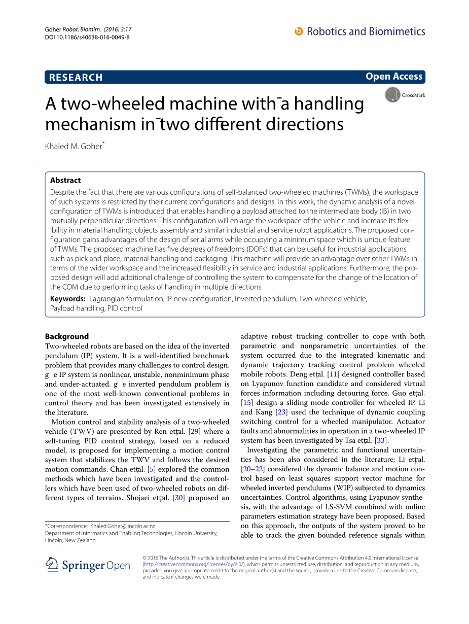 具有扩展中间体(IB)的两轮IP原理已经由Goher引入,Tokhi其中一个新的混合轮机器人机器(WRM)开发和配备线性致动器,如图1所示,以激活有效负载并把它提升到不同的水平。