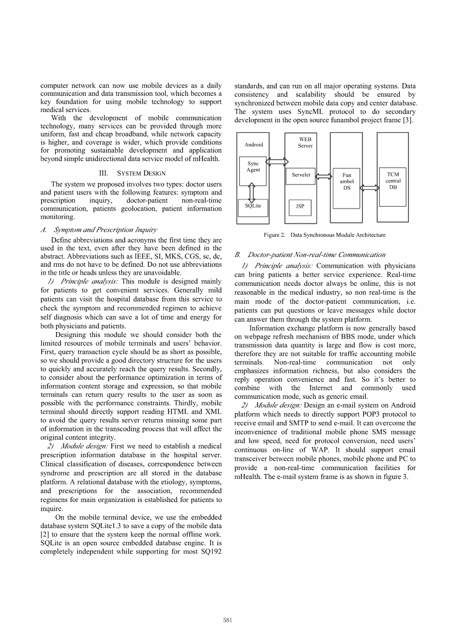 我们提出的系统涉及两种类型:医生用户和患者用户,并且具有以下功能:症状和处方查询,医生病人非实时通信,患者地理位置,患者信息监测。
