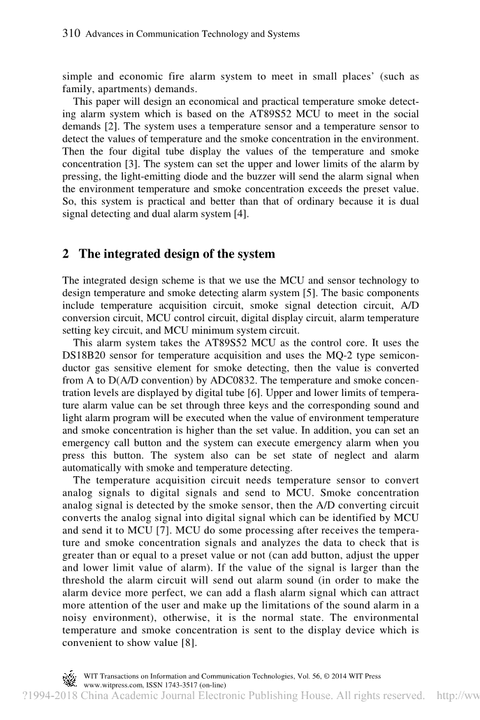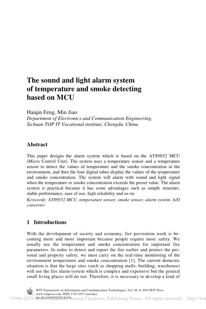 译文标题 基于单片机的温度和烟雾检测声光报警系统