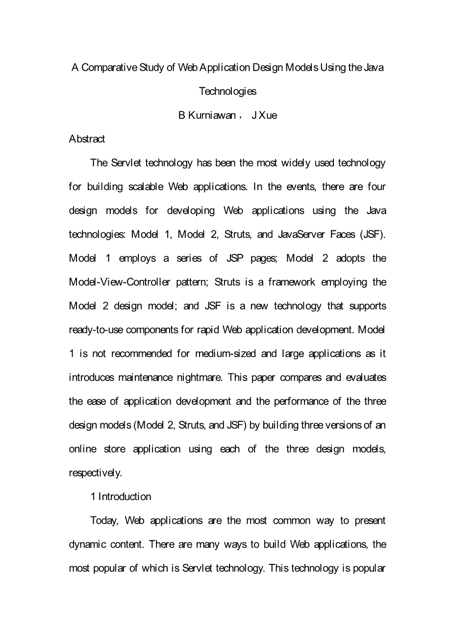 译文标题 基于 Java 技术的 Web 应用设计模型的比较研究