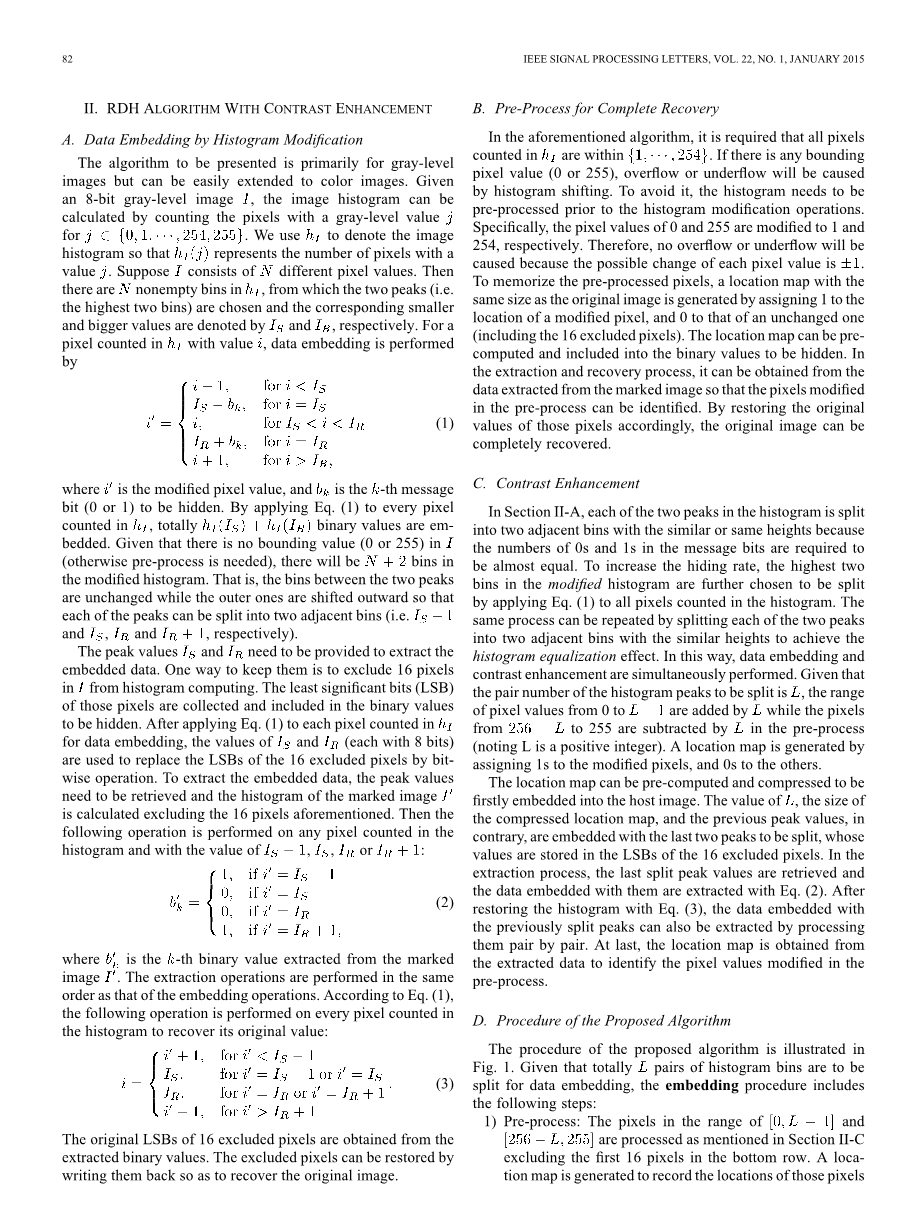 本函的其余部分安排如下。第二节介绍了对比度增强特征的RDH算法的细节。实验结果在第III节中给出。最后,第四节得出结论。