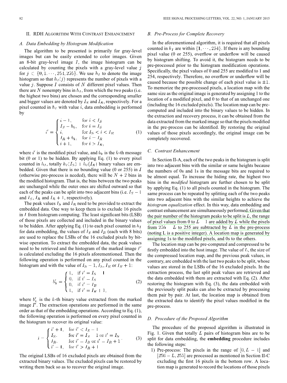 索引术语 :对比度增强,直方图修改,位置映射,可逆数据隐藏,视觉质量。