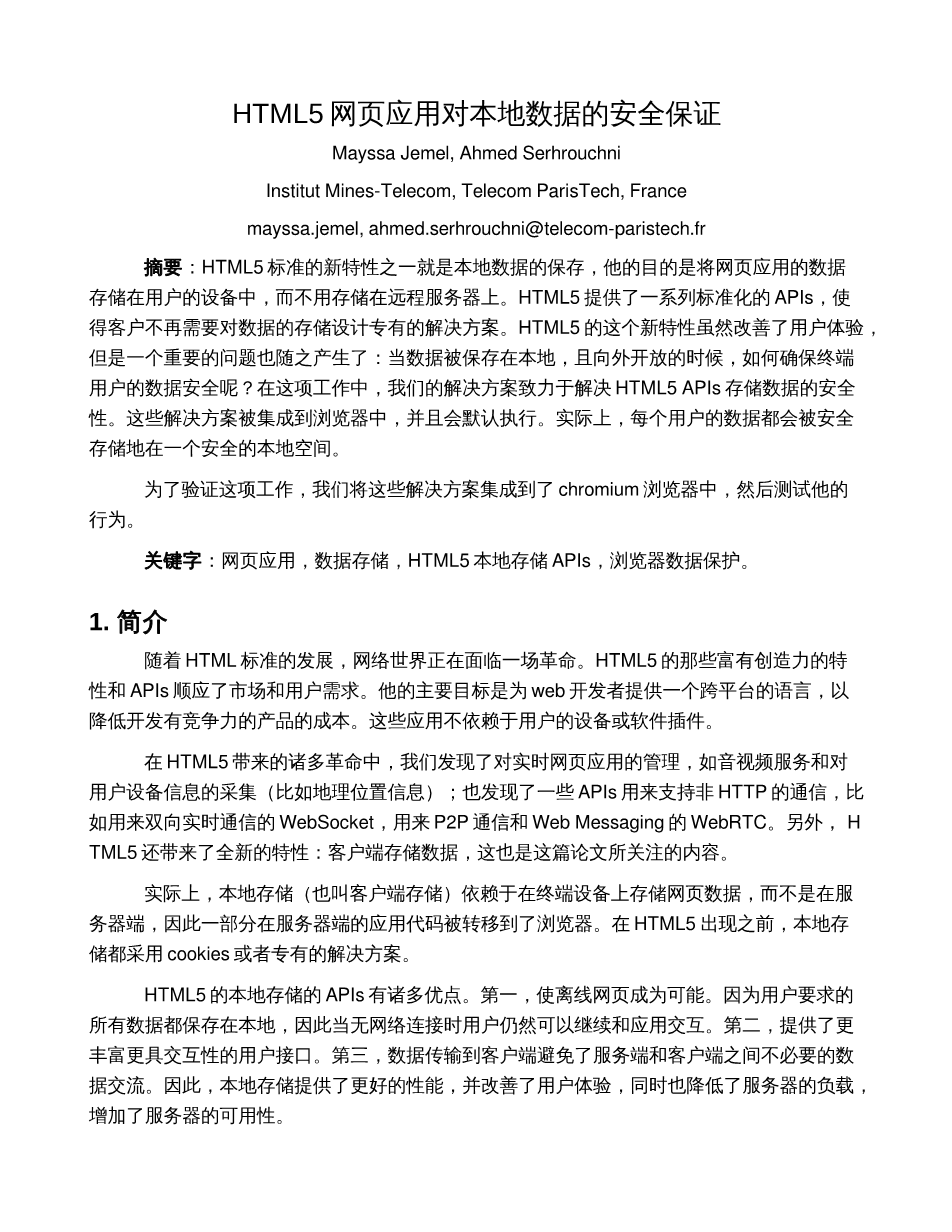 HTML5网页应用对本地数据的安全保证外文翻译资料