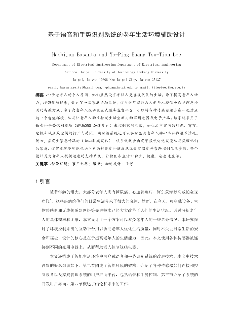 基于语音和手势识别系统的老年生活环境辅助设计外文翻译资料