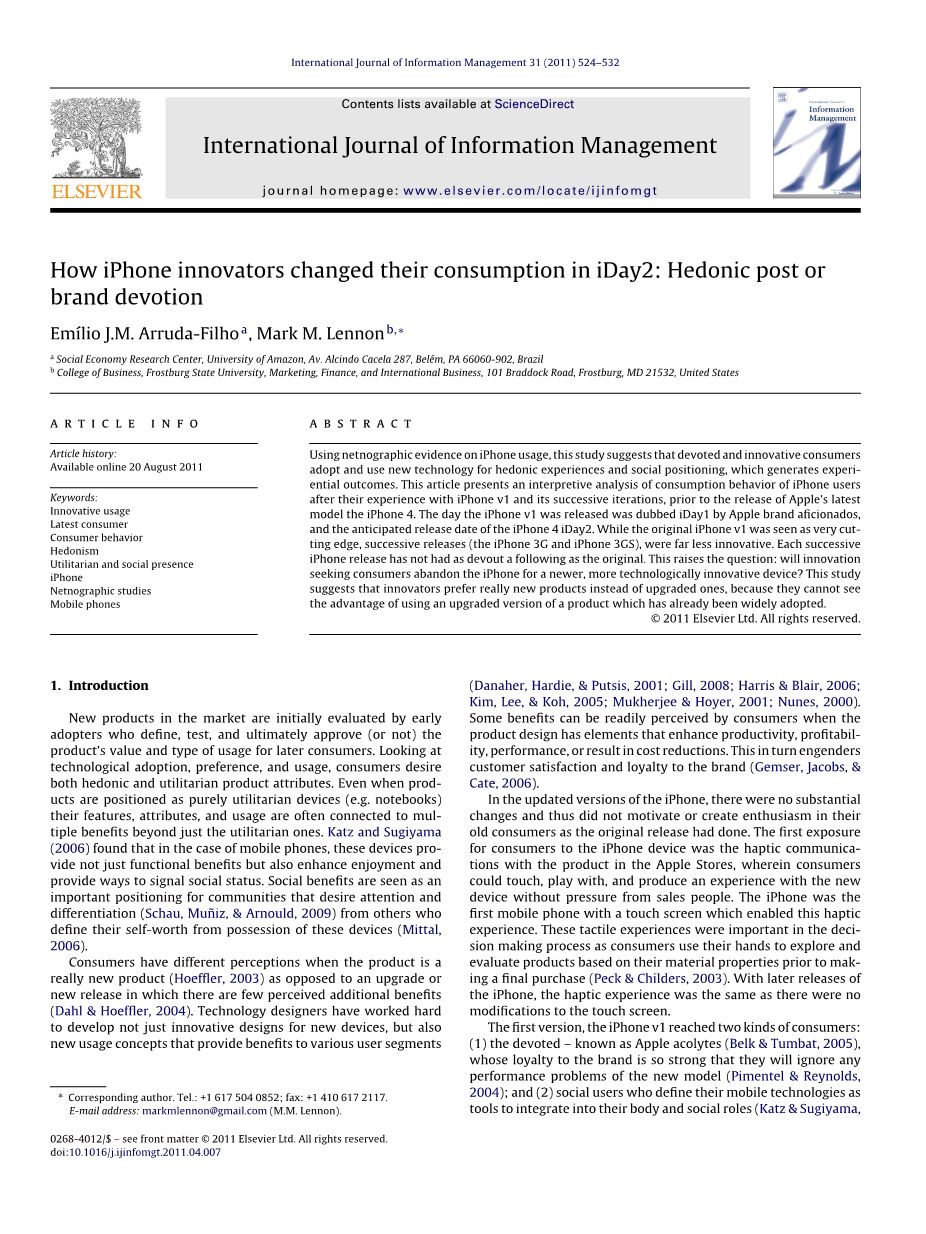 根据网络日志上面用户们使用iPhone的数据,我们可以得出如果能投入和创新,消费者将根据使用新技术的快乐的经历和社会定位,从而生成自己的体验。本文对苹果手机用户的消费行为进行了解释,包括他们的使用iPhone v1及其后续产品的经历,包括苹果最新的放出的iPhone4。iPhone V1发表的那一天被苹果品牌爱好者们称为iday1,而后期iPhone 4的发售日期则被称为iday2。人们认为iPhone V1在当时是非常先进的,但是后续版本(iPhone 3G和iPhone 3GS)的在创新上却远低于iPhone V1。每一个连续发布的iPhone并没有很好的延续之前的版本。这就提出了一个问题:寻找创新的消费者会为一个更新颖、更多技术创新的设备而放弃苹果吗?本研究表明,创新者喜欢真正的新产品,而不是升级之后的,因为他们看不到使用已被广泛采用的一种产品的升级版的优点。
