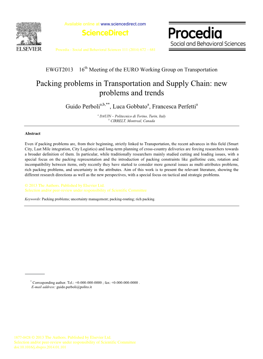 即使包装的问题是从他们的最开始严格的交通运输,在这一领域的最新进展(智能城市,最后一英里的集合,城市物流)和在跨越全国范围内的长期计划迫使研究人员对它有了一个更加广泛的定义。特别是在传统研究人员主要研究切割和装载问题上,包装上的显示和包装因素,比如产品分区的介绍,项目的旋转不兼容性,最近才有的多属性问题,大量的包装问题,和不确定性的属性。这项工作的目的是提出相关的观点,呈现出不同的研究方向,以及新的观点,特别侧重于战术和战略问题。
