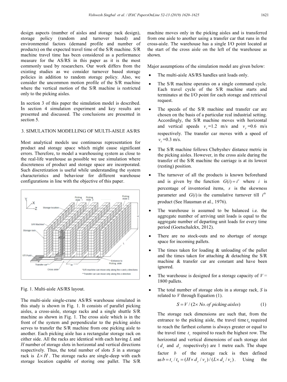 bull; S / R机器和转运车的速度是根据特定的实际工业设置选择的。因此,S / R机器水平移动和垂直速度分别为vx =1.2m/s和vy =0.6m/s。转运车以vz =0.3 m/s. 的速度移动。
