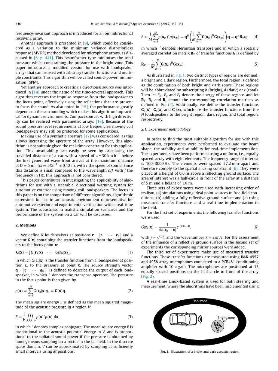 如该图所示。1,两个不同类型的区域定义:一个明亮和黑暗的区域。此外,总的区域被定义为明亮和黑暗的区域的结合。这些地区将通过下标B(亮),D(暗)或T(总)缩写。然后让的E b; E D和E t指这些地区的能源,让R B; R D所和R t指如公式定义相应的相关矩阵。 (4)。此外,我们定义的传递函数G B(x)的;G D-(X)和G T(X),其分别为从N扬声器的传递函数的亮区,暗区和总区域。