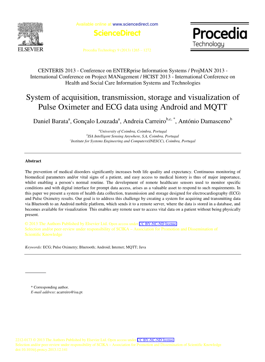 ISA Intelligent Sensing Anywhere, S.A, Coimbra, Portugal
