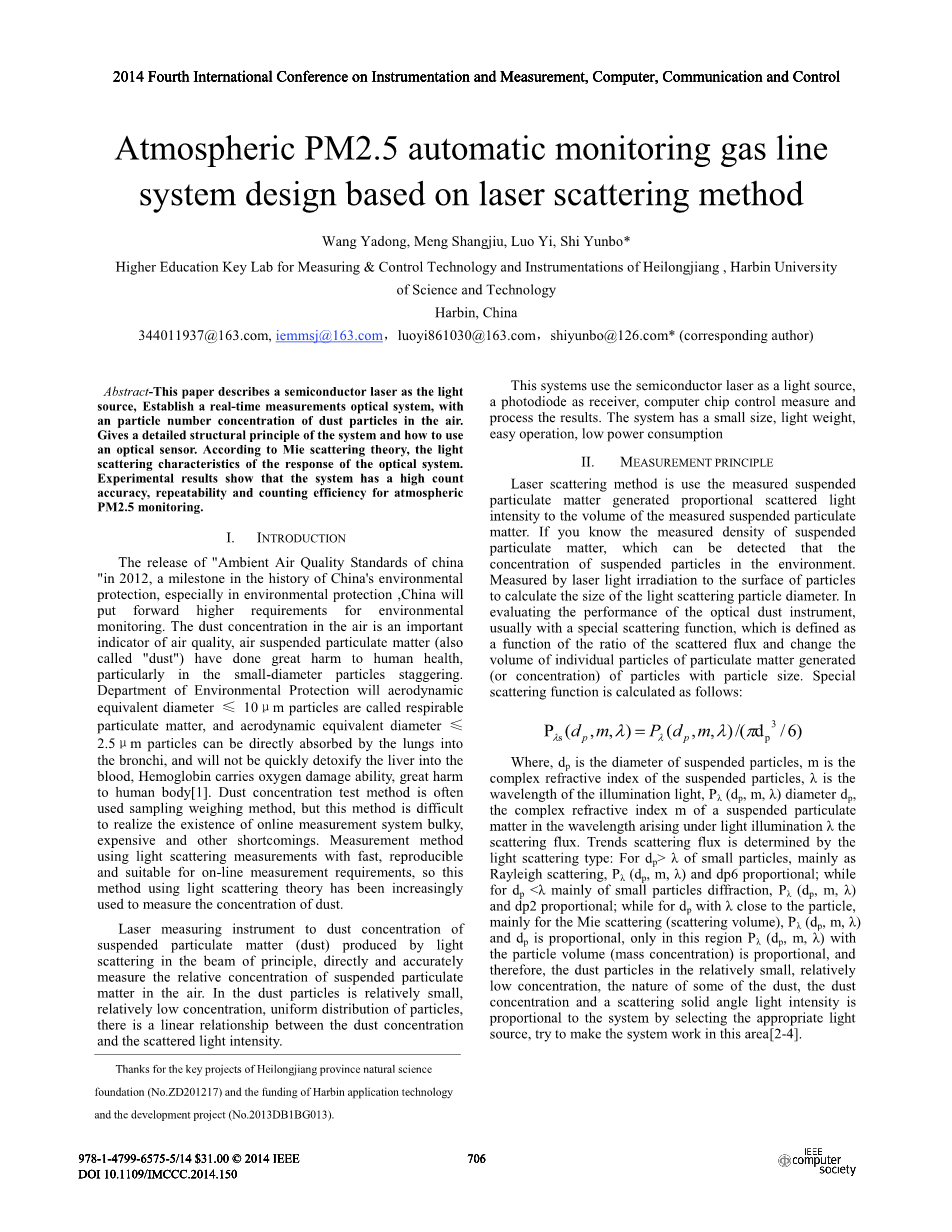 摘要:本文介绍了一种以半导体激光器作为光源,随着空气中尘埃粒子的粒子数浓度变化而建立起的实时测量光学系统。根据Mie散射理论以及光散射特性对光学系统的响应,本文给出了详细的系统结构原理及如何使用光学传感器。实验结果表明,对于大气环境中的PM2.5(可入肺颗粒物)监测计数,该系统具有较高的精度、重复性和计数效率。