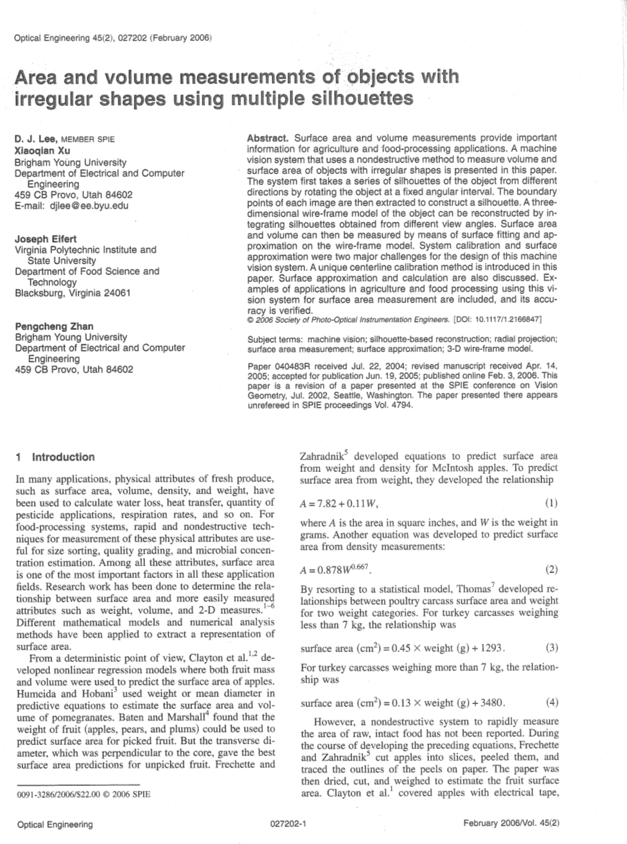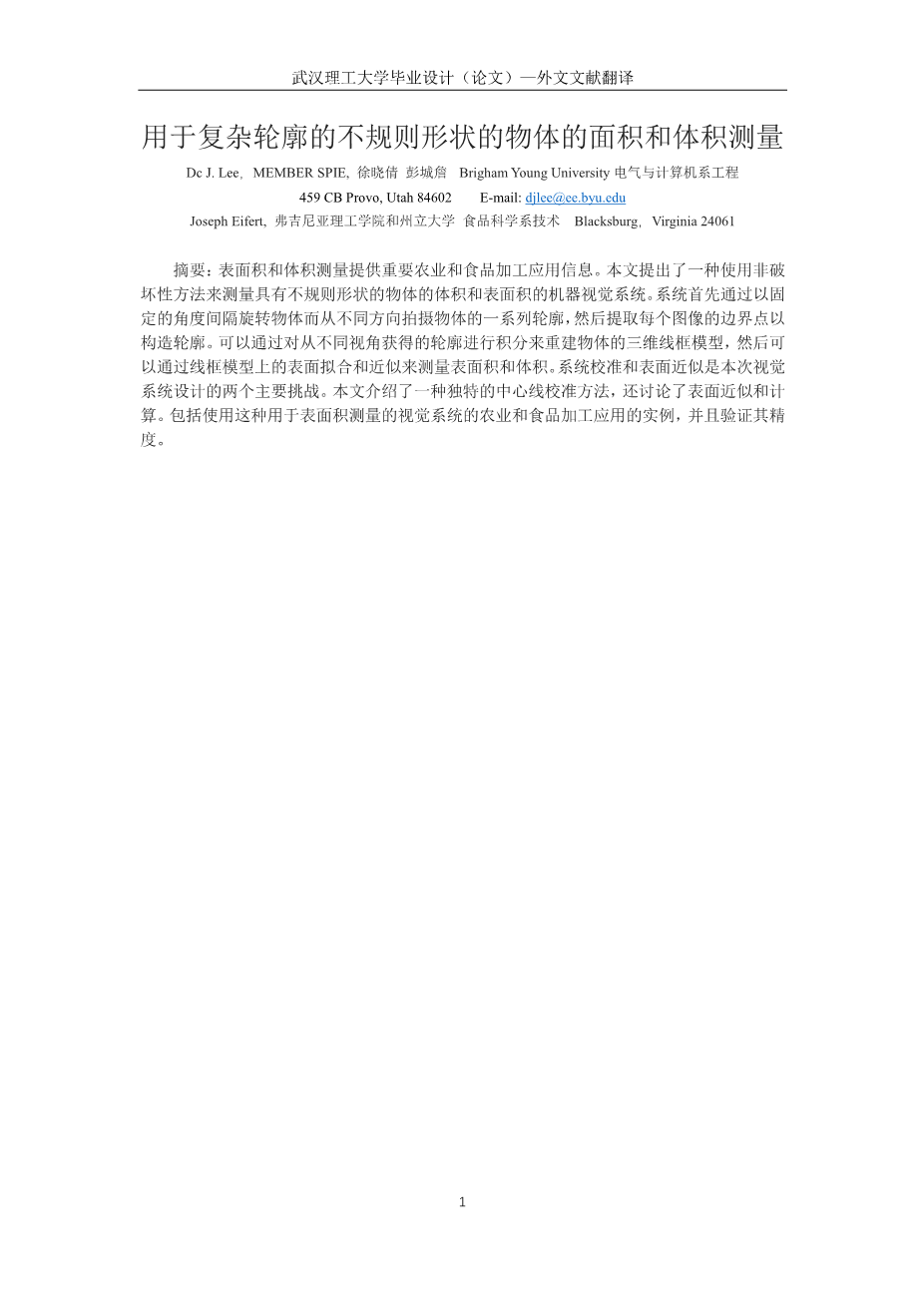 用于复杂轮廓的不规则形状的物体的面积和体积测量外文翻译资料
