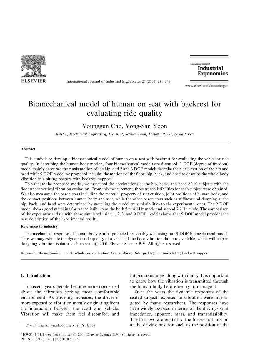 使用我们的9自由度生物力学模型可以很好地预测人体的机械反应。因此,如果地板振动数据可用,我们可以估计车辆的动态行驶质量,这将有助于设计振动隔离器(例如座椅)。#2001 Elsevier Science BV保留所有权利。