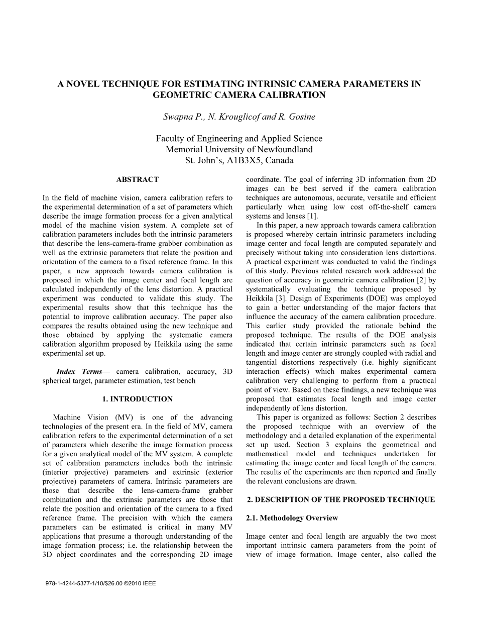 A NOVEL TECHNIQUE FOR ESTIMATING INTRINSIC CAMERA PARAMETERS IN