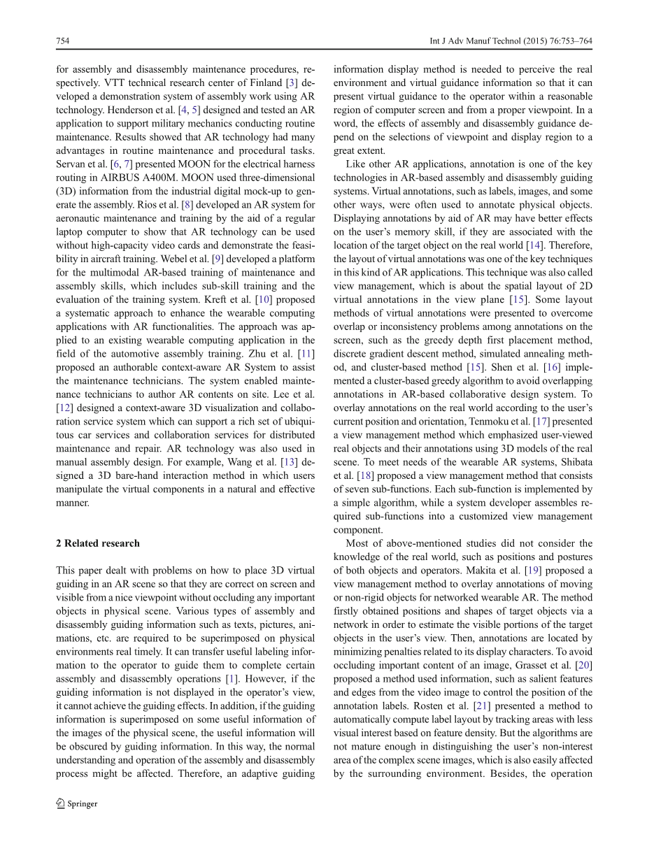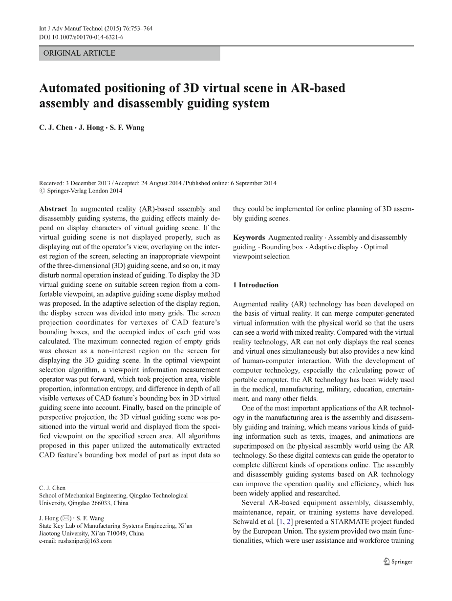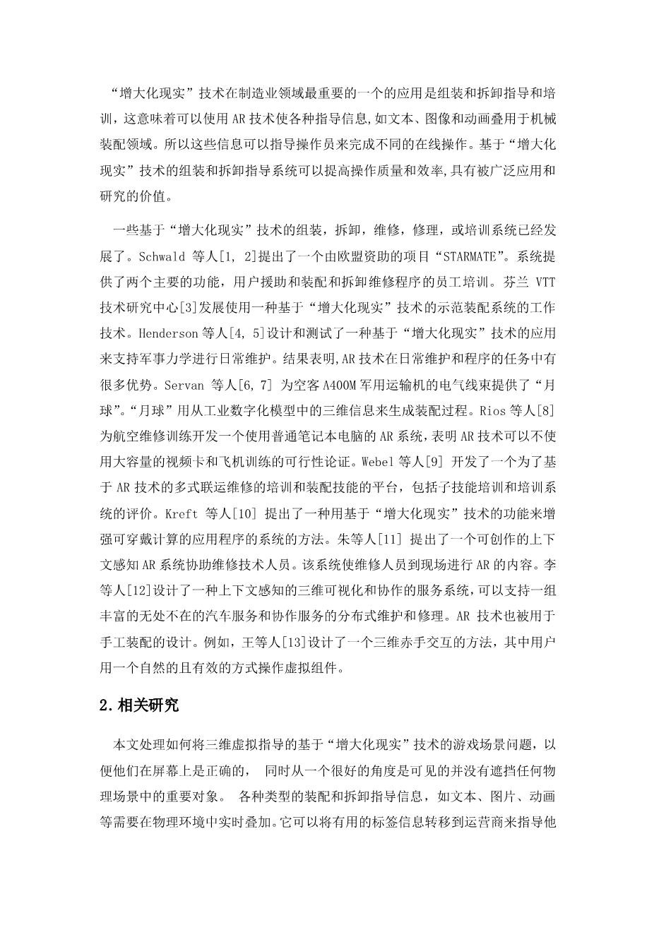 在基于“增大化现实”技术的装配和拆卸导向系统中的三维虚拟 场景的自动定位外文翻译资料