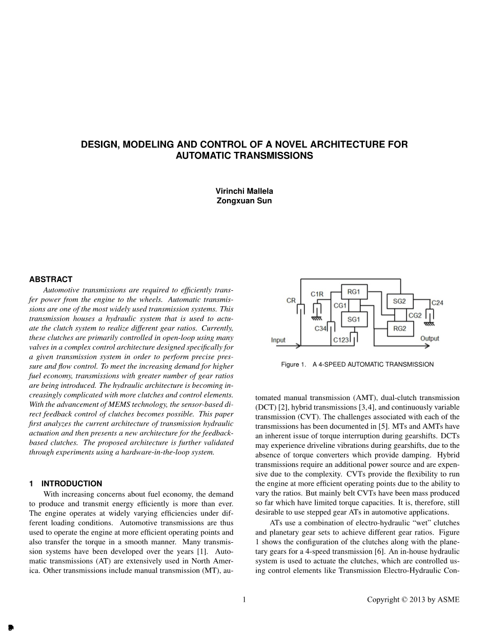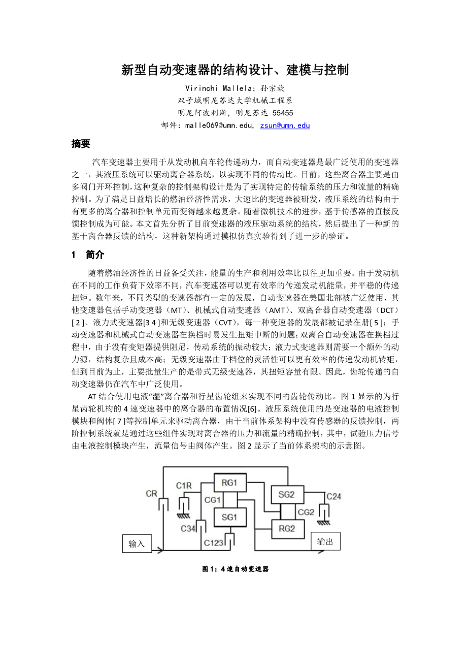 新型自动变速器的结构设计、建模与控制外文翻译资料