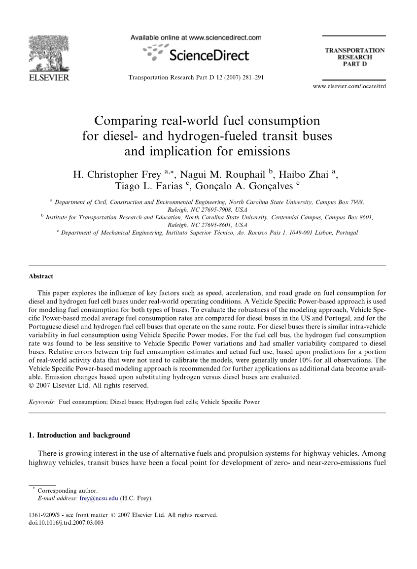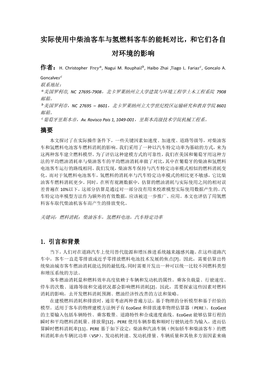 实际使用中柴油客车与氢燃料客车的能耗对比,和它们各自 对环境的影响外文翻译资料