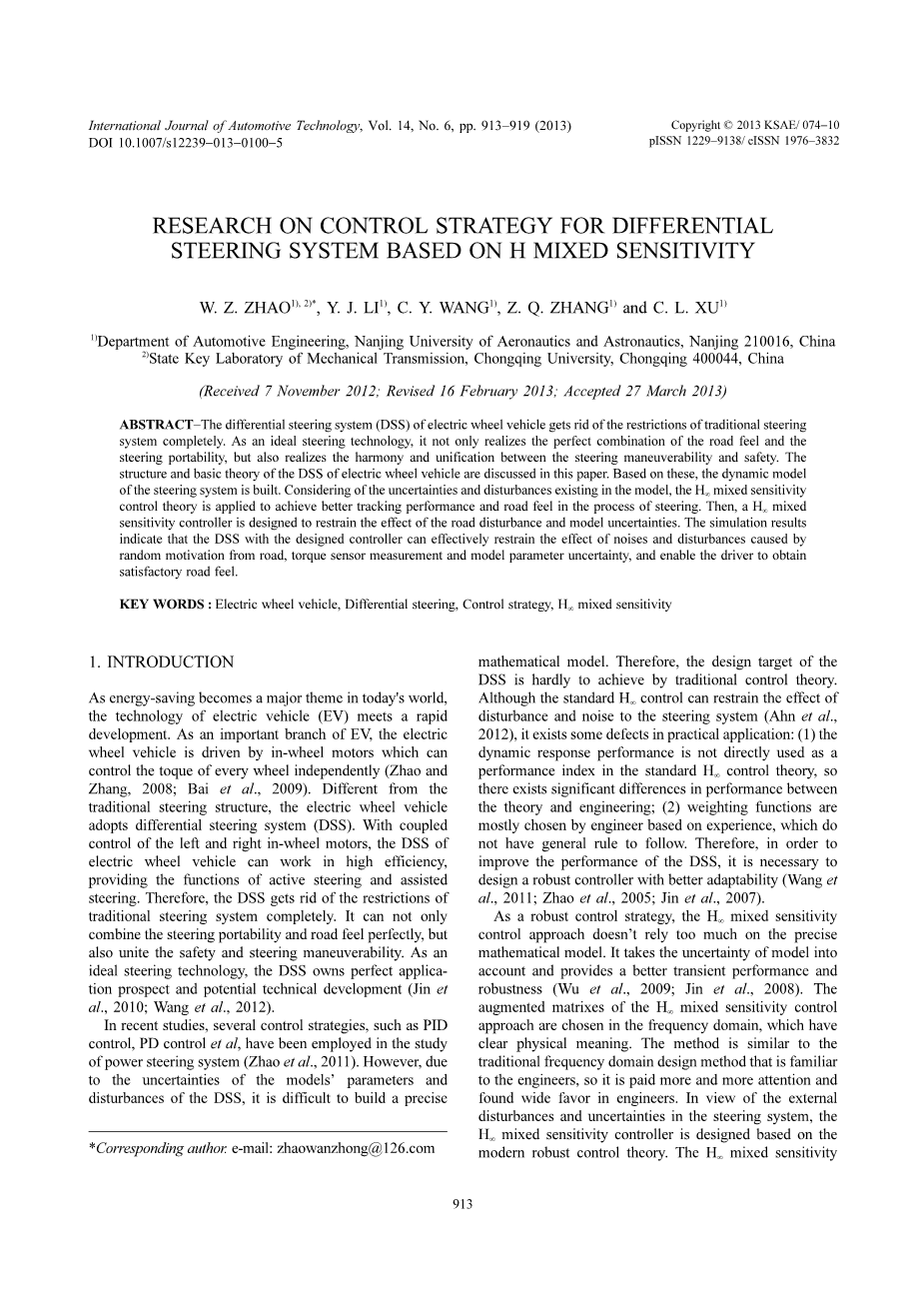 基于混合灵敏度的差分转向系统控制策略研究外文翻译资料