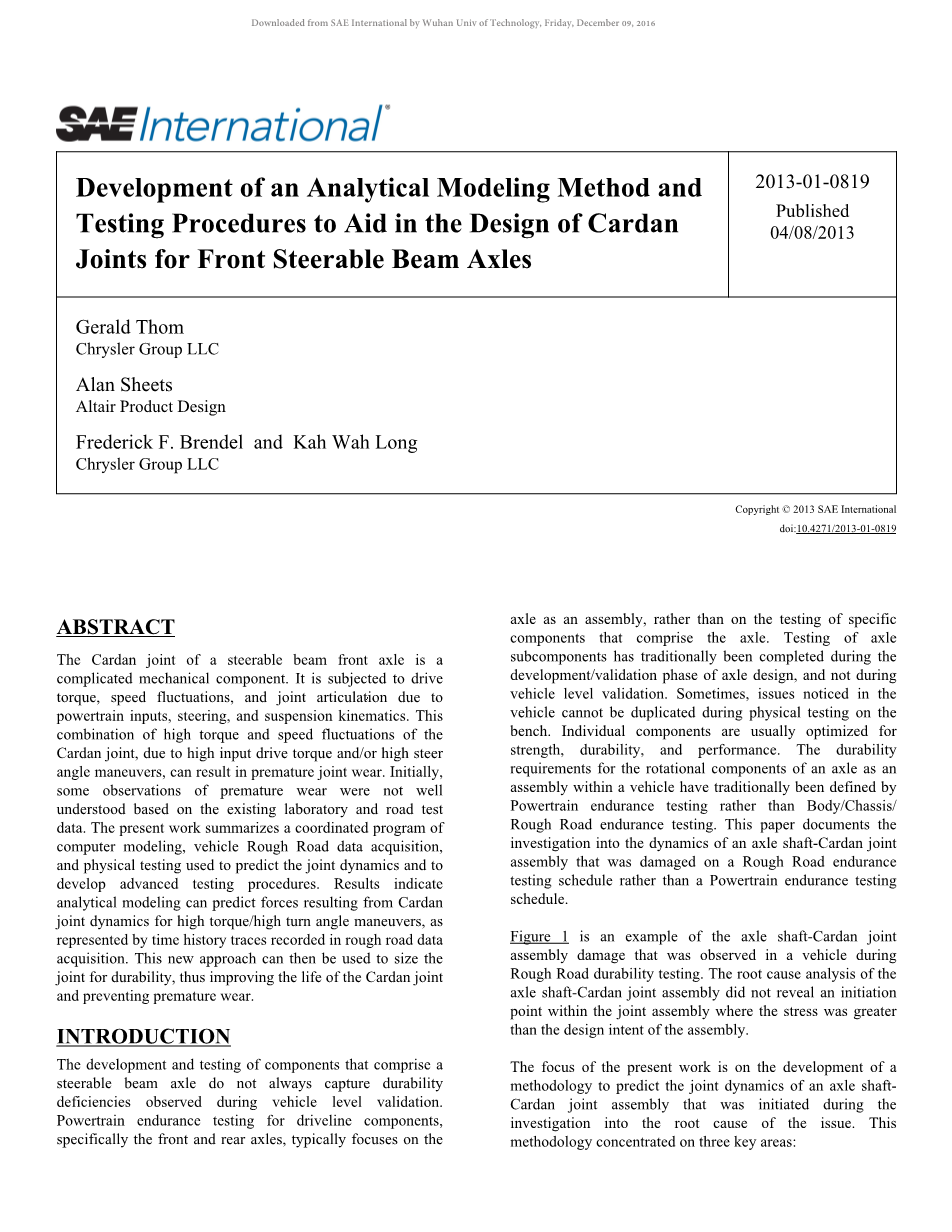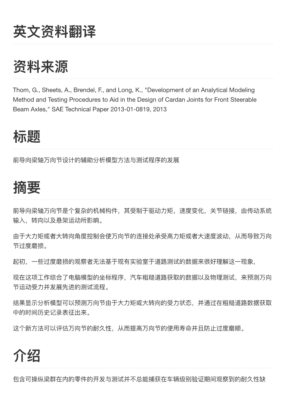 前导向梁轴万向节设计的辅助分析模型方法与测试程序的发展外文翻译资料