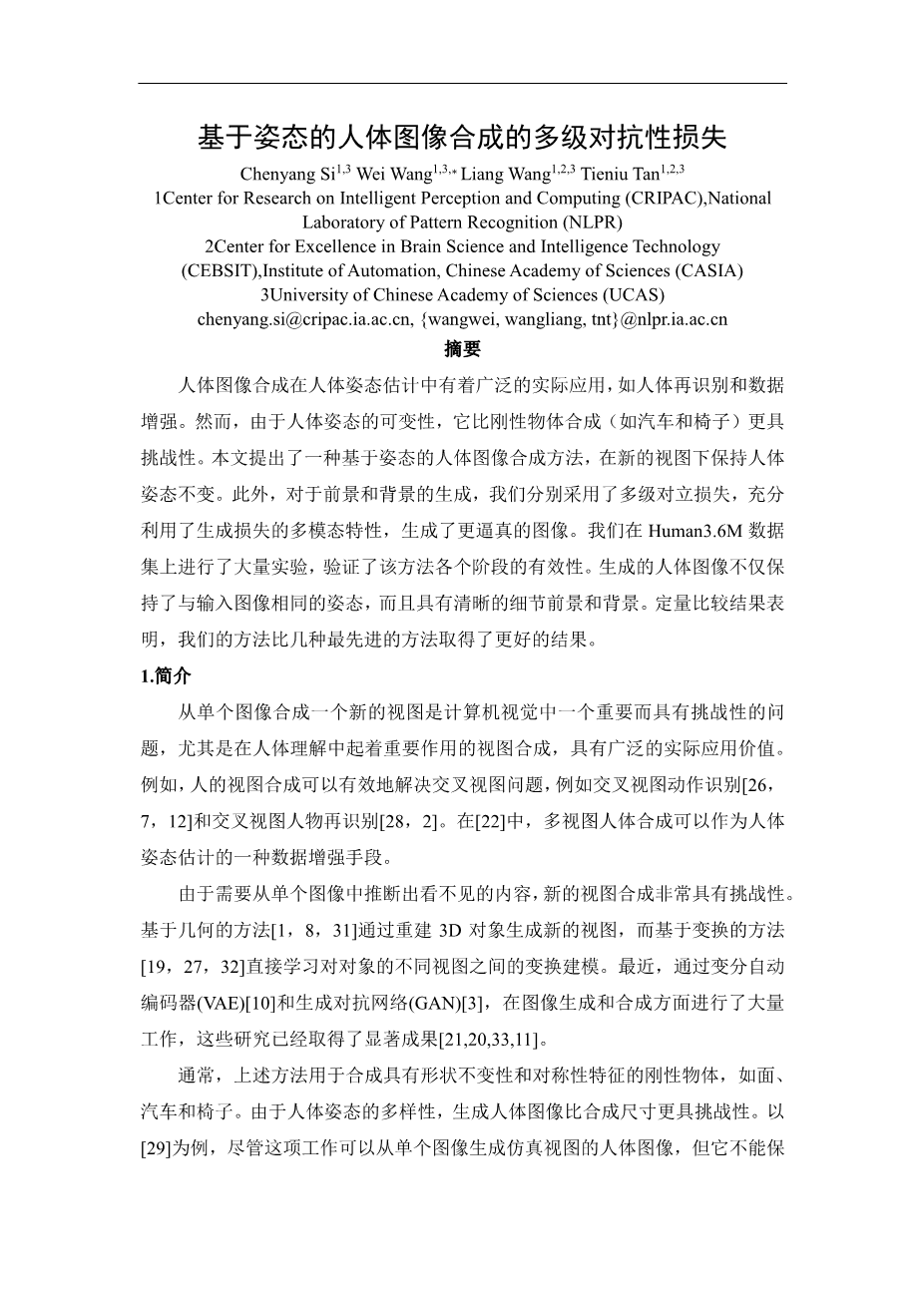 基于姿态的人体图像合成的多级对抗性损失外文翻译资料