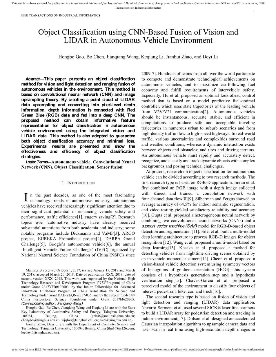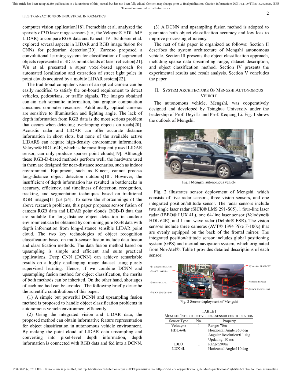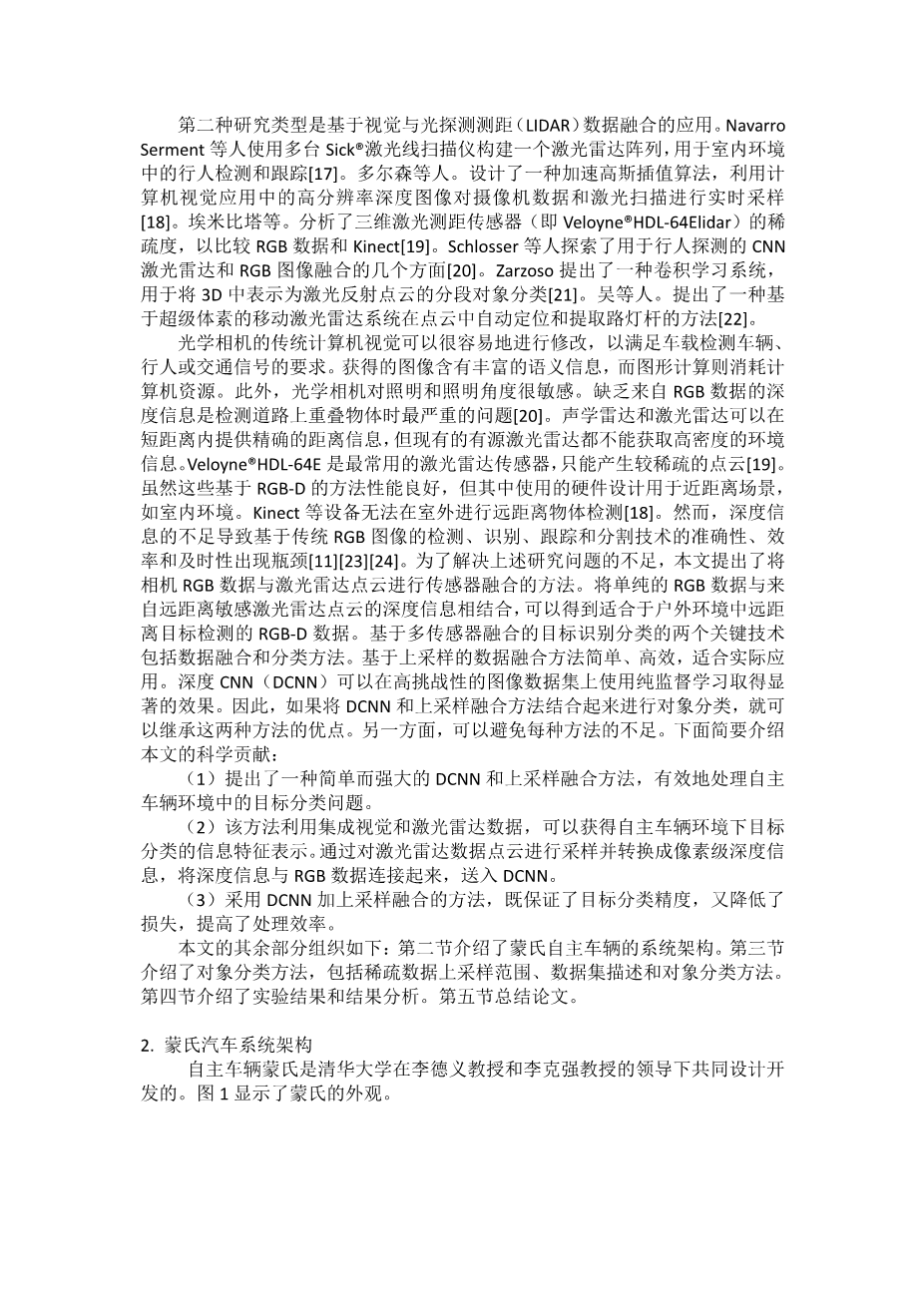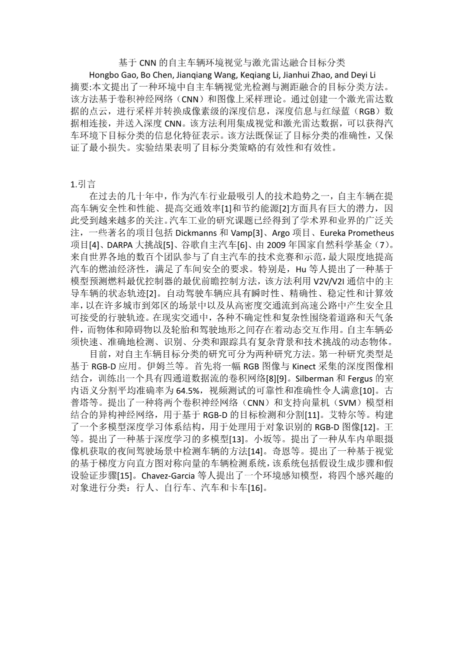 基于CNN的自主车辆环境视觉与激光雷达融合目标分类外文翻译资料
